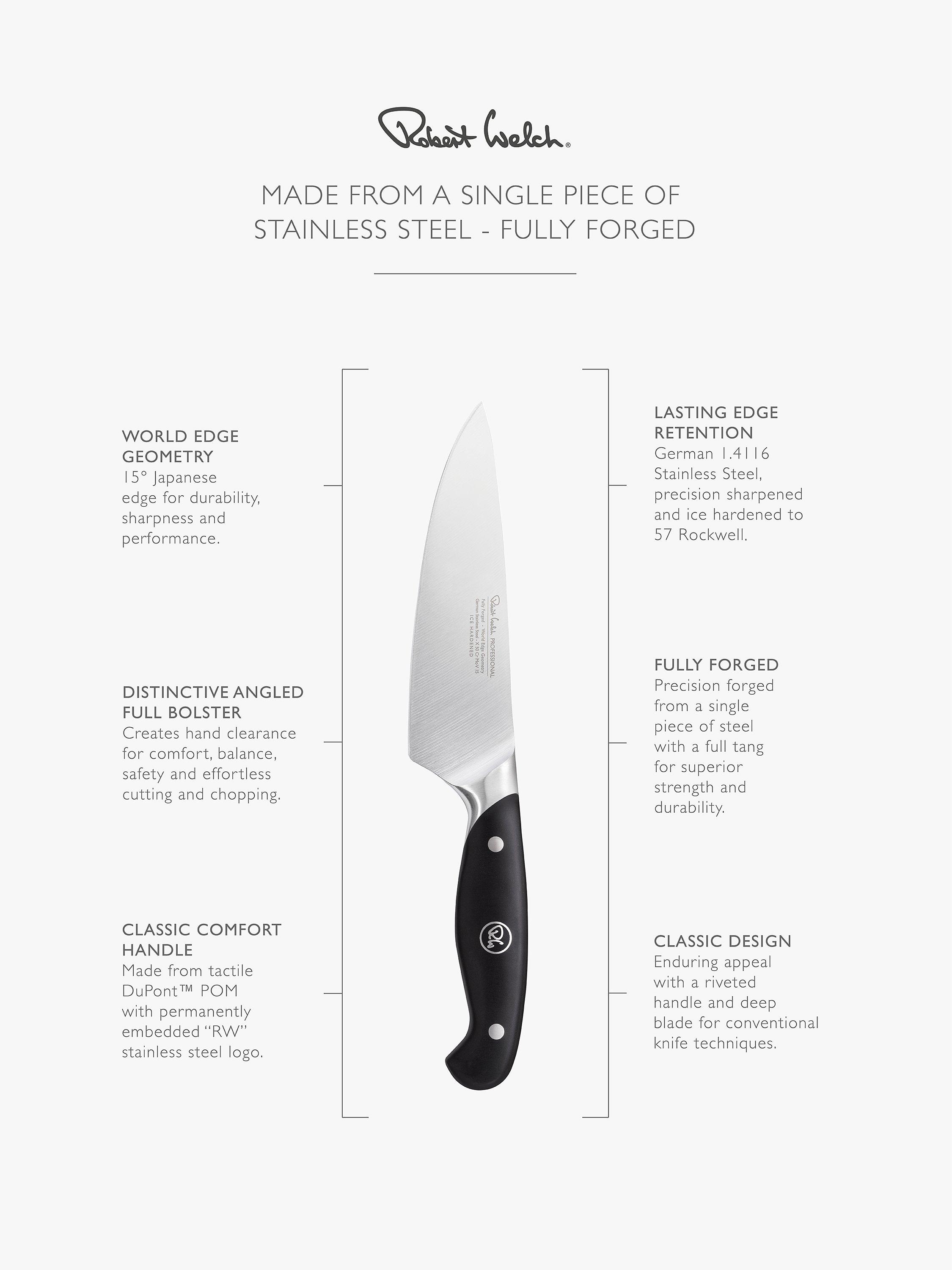 Robert Welch Professional is a high-performance knife range designed for heavy use by keen home cooks and professional chefs aiming for culinary excellence.