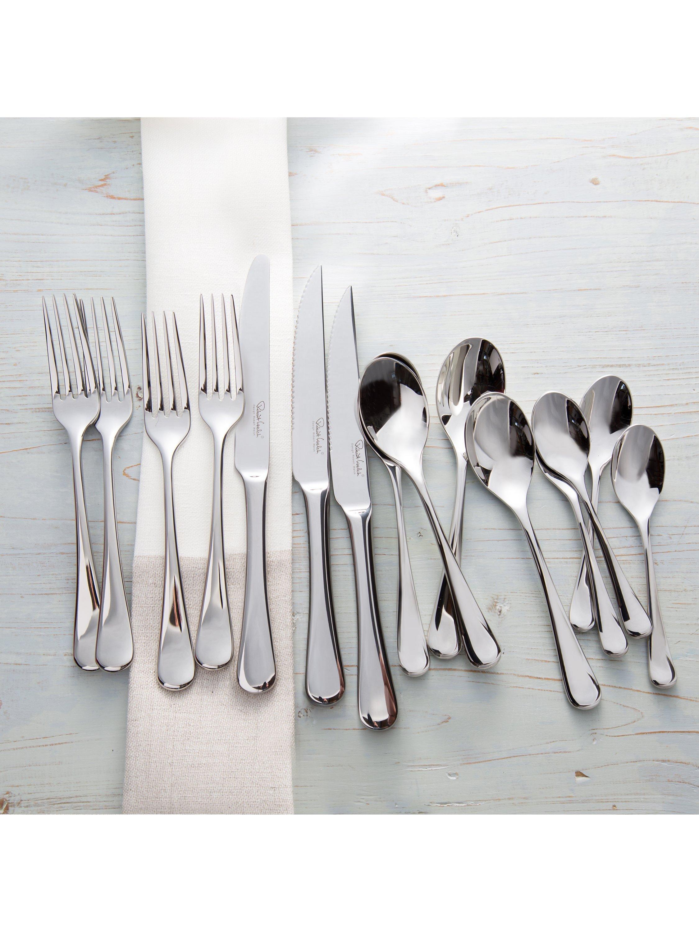 The most extensive cutlery range we offer at John Lewis & Partners, the Radford collection by Robert Welch MBE fuses classic elegance and modern streamlined design. Enhanced by balance and weight, the versatile form and character of Radford complement any table setting, whether making a bold statement for daily dining, or delighting dinner party guests. Spoons and forks are made using the highest quality 18/10 stainless steel. Knife blades are made from specially hardened stainless steel to provide the finest possible cutting edge.