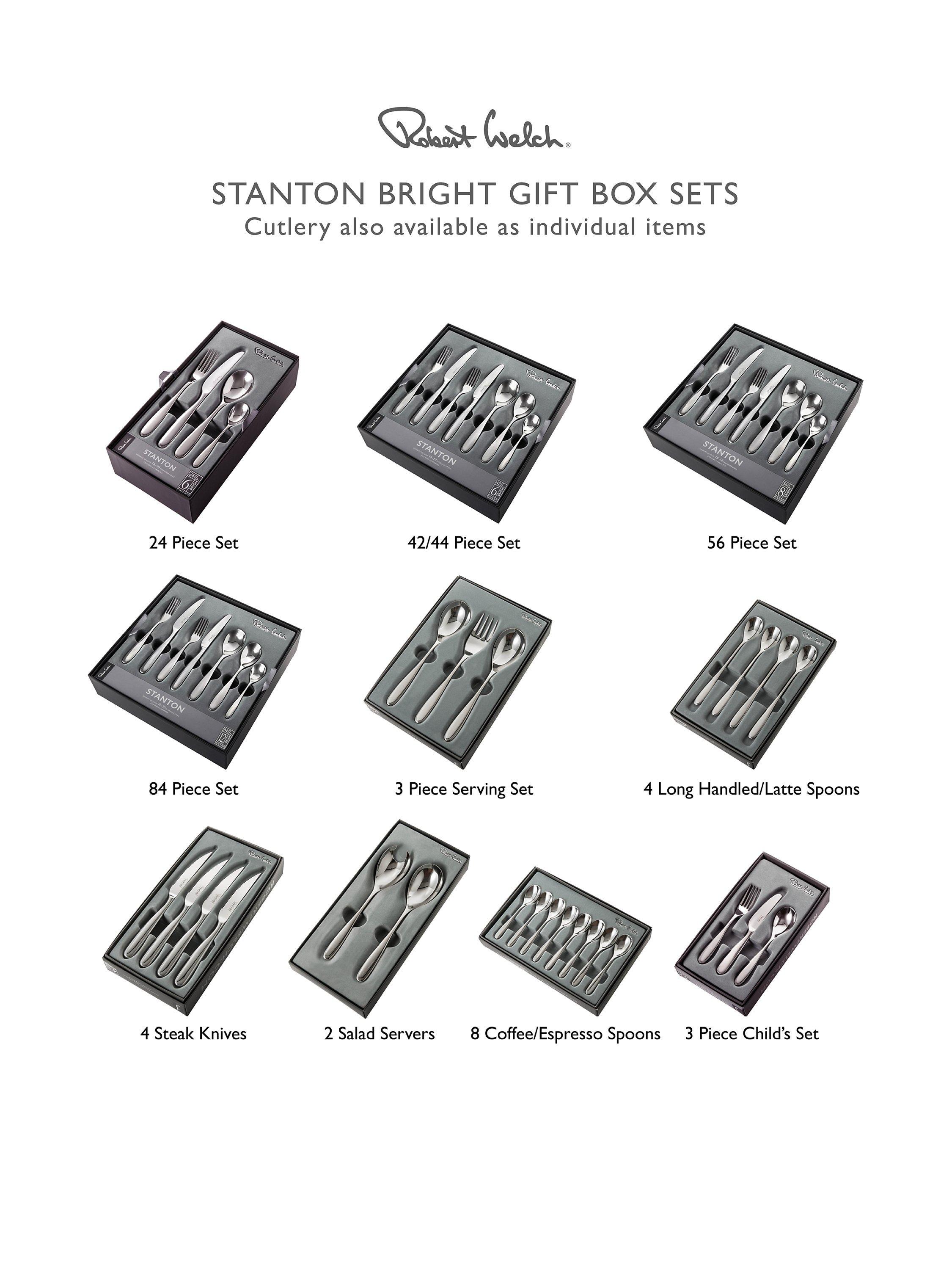 Stanton cutlery is an example of beautiful and exact sculpture; well-balanced and comfortable to use. Spoons and forks are made using the highest quality 18/10 stainless steel. Knife blades are made from specially hardened stainless steel to provide the finest possible cutting edge. All Stanton cutlery is available with a mirror finish, has a 25 year guarantee and is dishwasher safe.