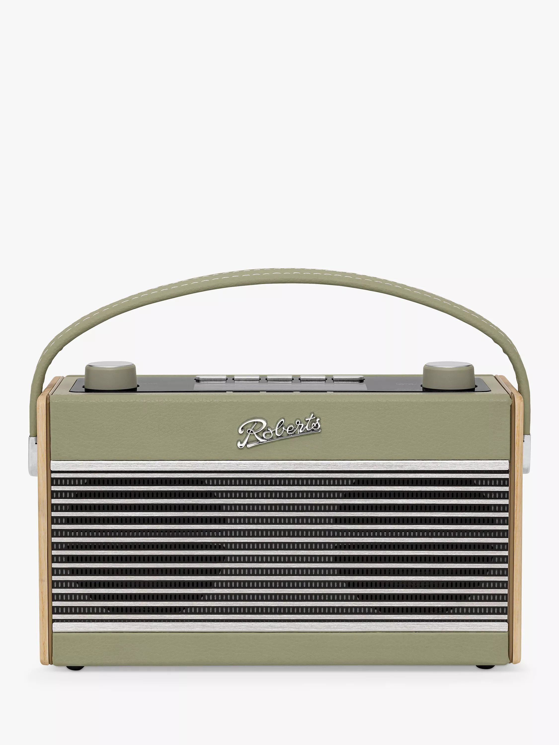 Vintage design meets the latest DAB and Bluetooth tech. Recalling Roberts' classic 'Rambler' radio from the seventies, it combines wooden case, metal grille, and a durable leather handle.