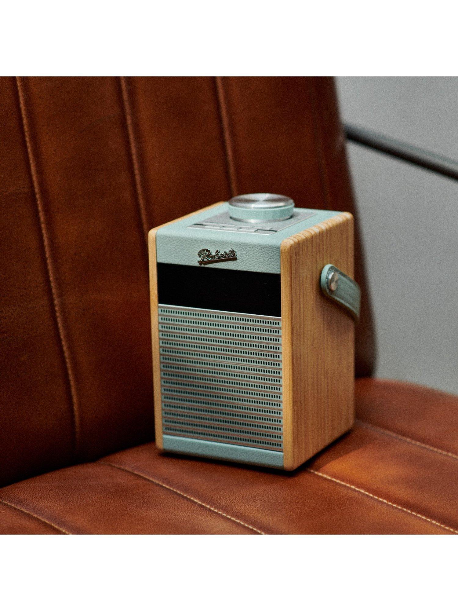 Vintage design meets the latest DAB and Bluetooth tech. Recalling Roberts' classic 'Rambler' radio from the seventies, it combines wooden case, metal grille, and a durable leather handle.