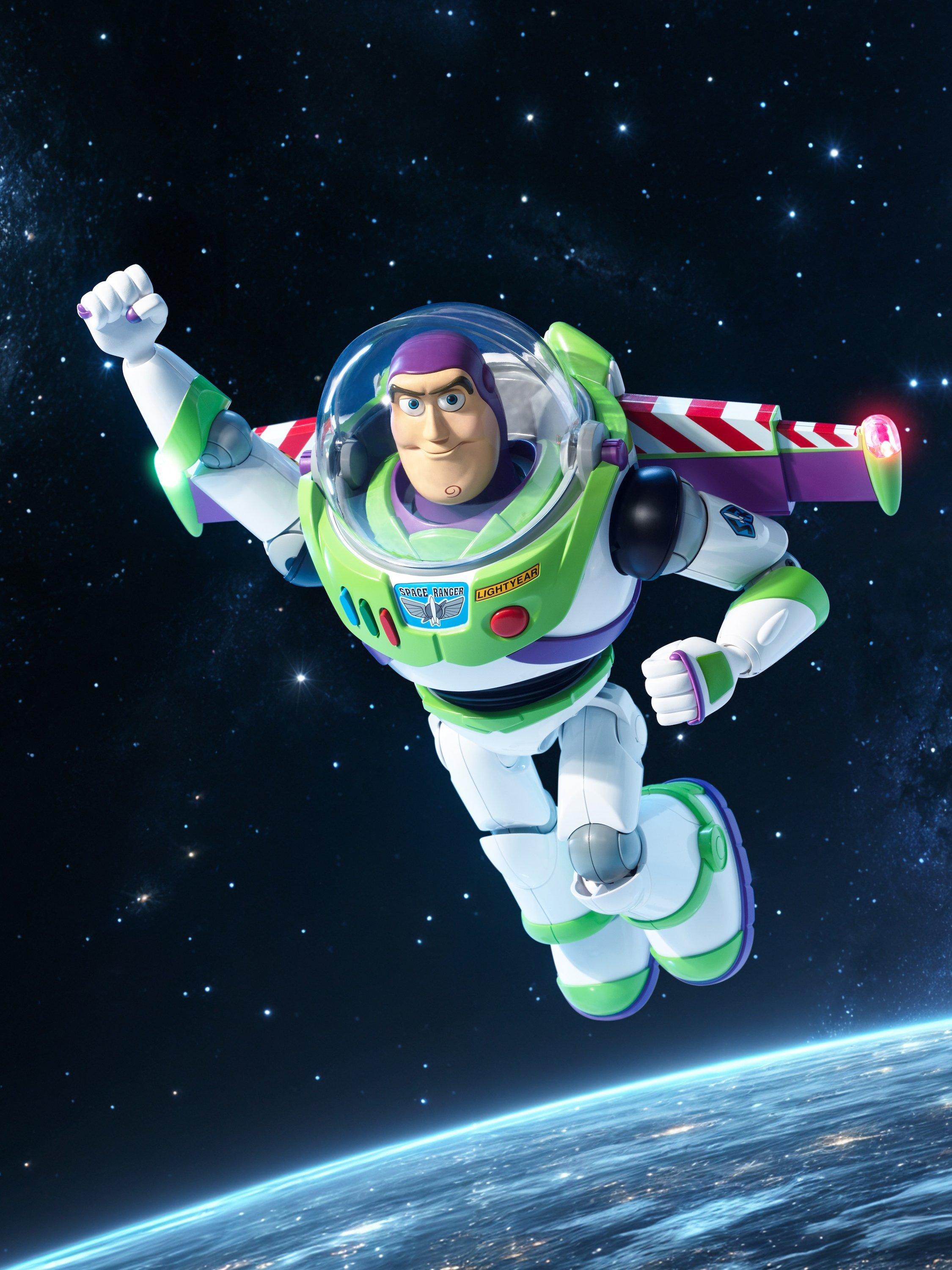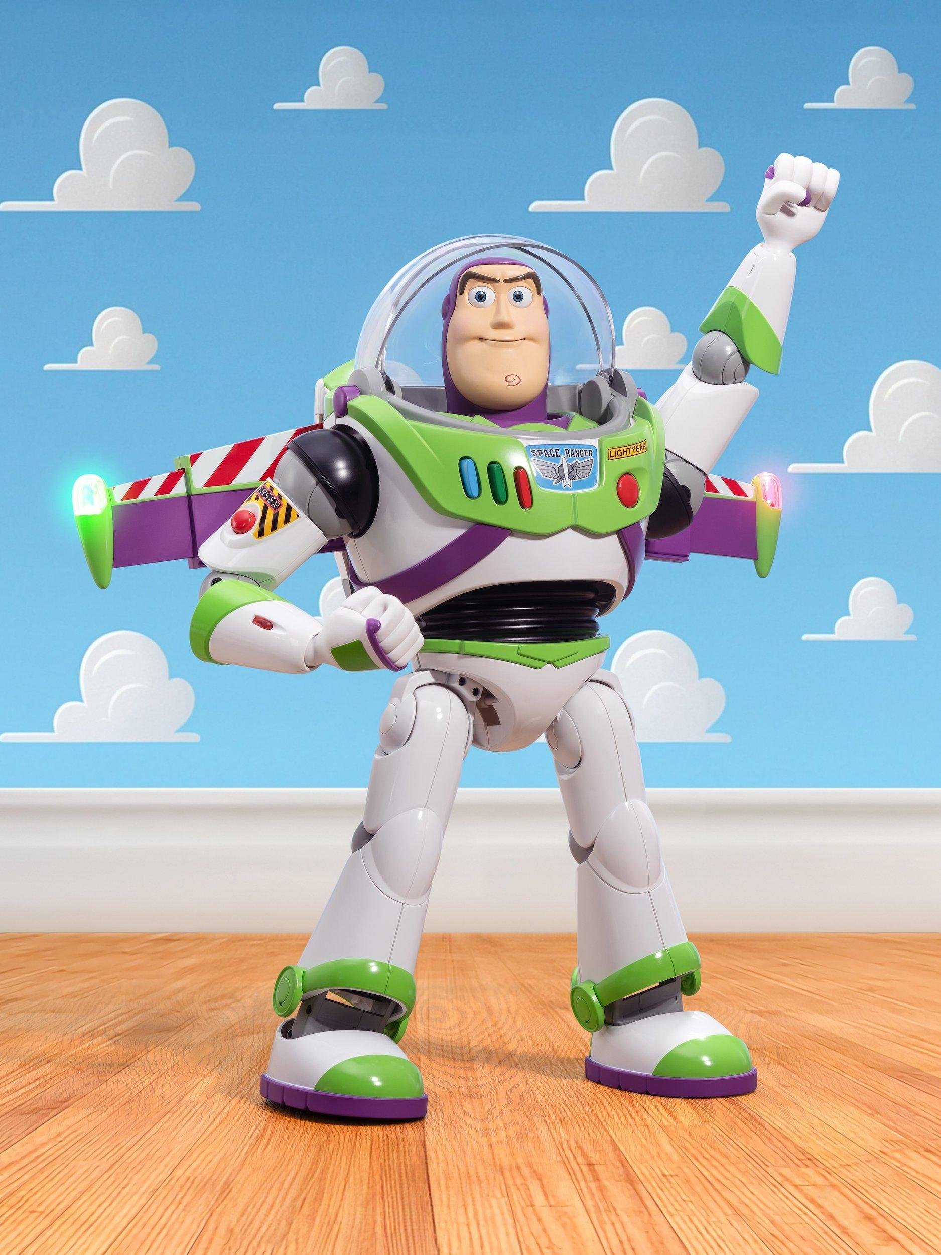 Movable eyes and mouth deliver the most interactive expression. Over 20+ original prints were used to recreate the image of Buzz Lightyear. Natural walking movements mirror the iconic Space Ranger.