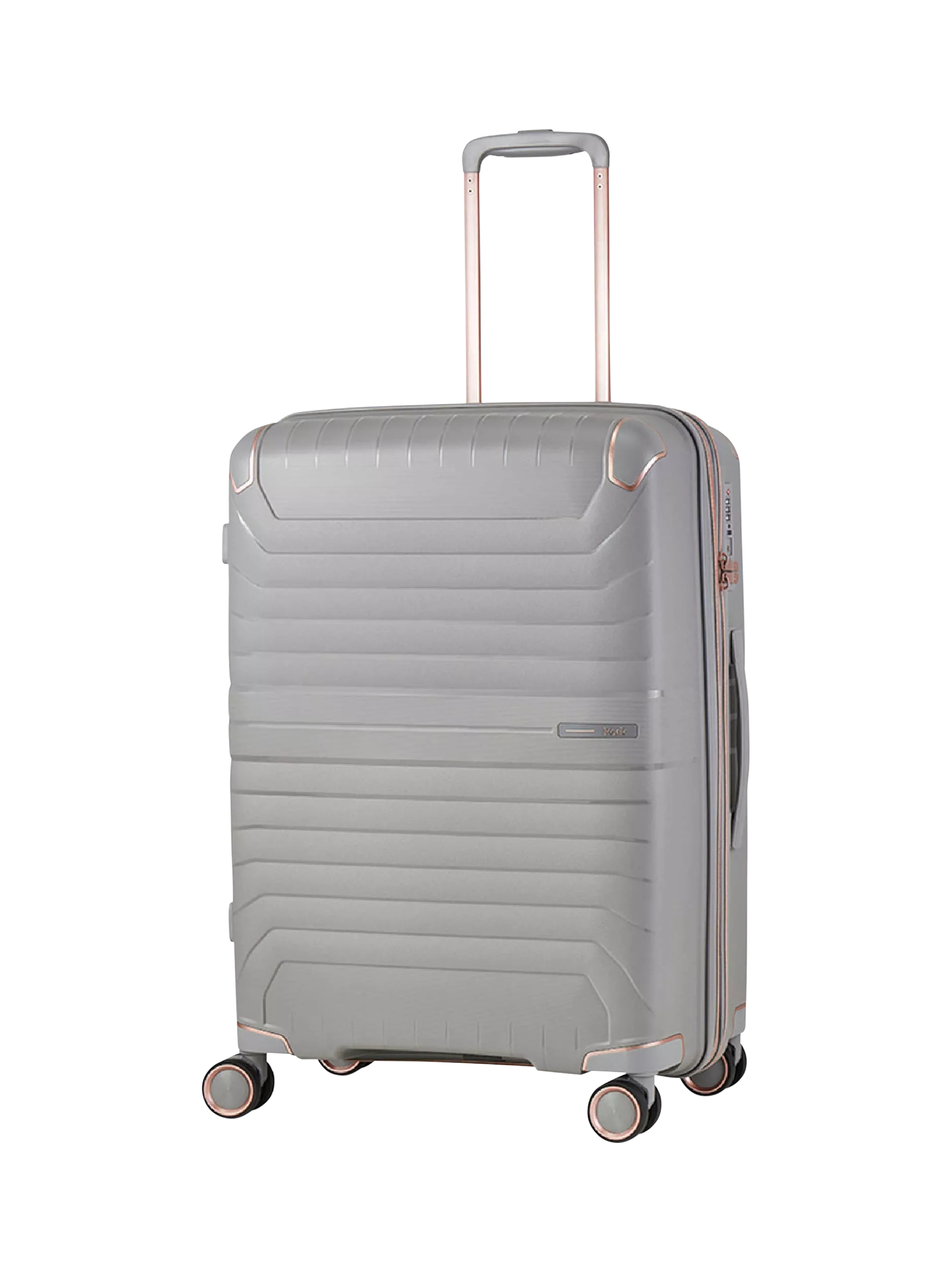 RockAstrid Medium 65cm Expandable 8-Wheel Suitcase, 61/69L, Grey