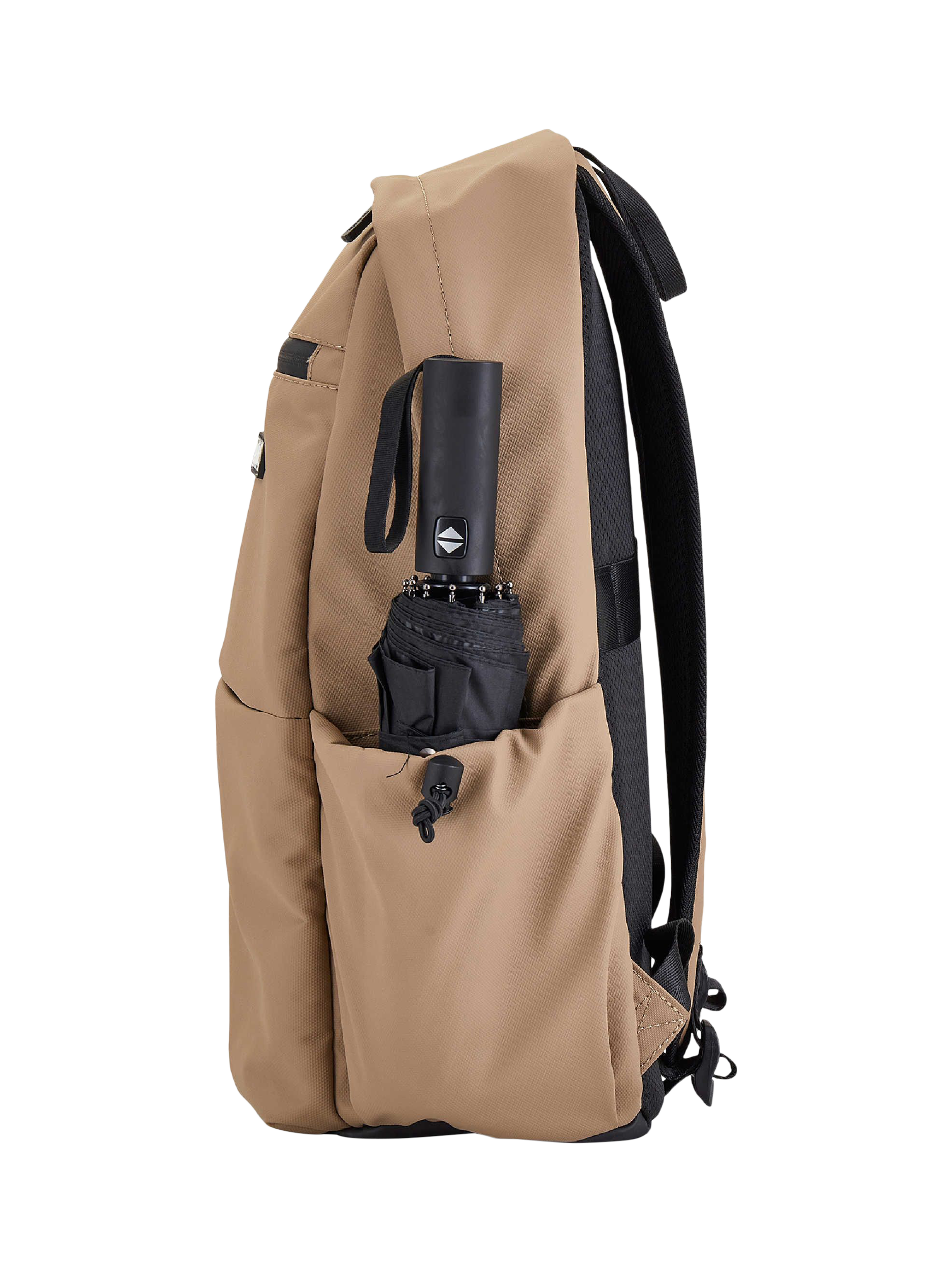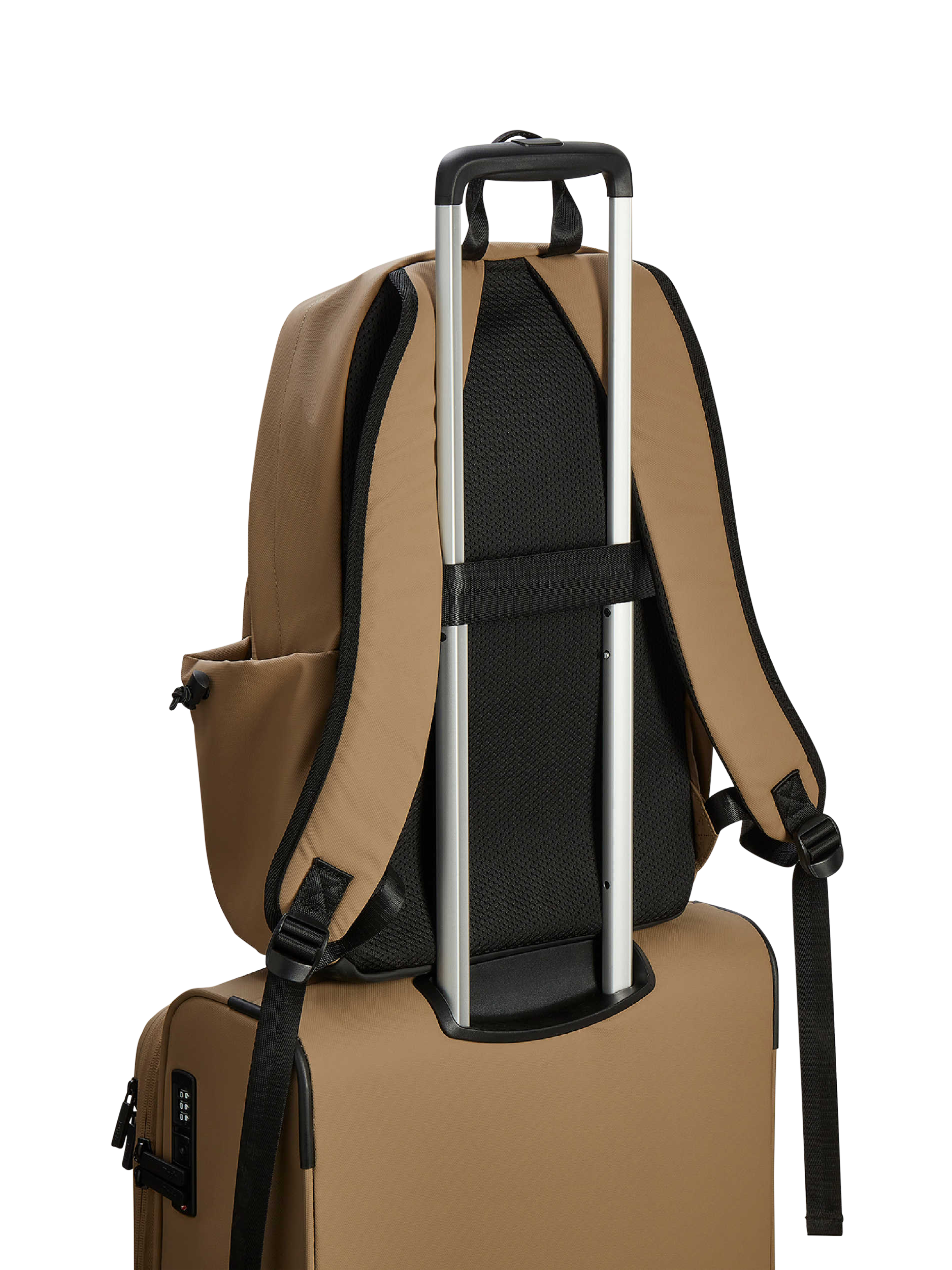 The Harper laptop backpack has a suitcase trolley strap for maximum ease when travelling, soft padded and adjustable shoulder straps, and a water bottle holder to ensure every practicality is considered.