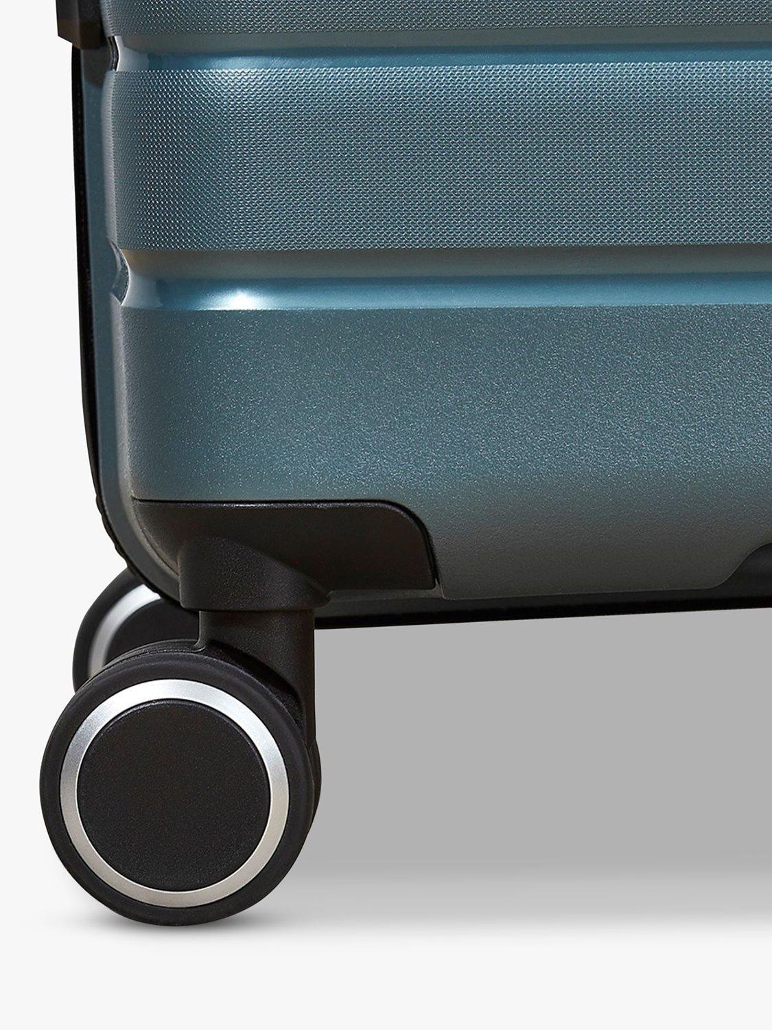 8 smooth rolling wheels and a telescopic, push-button handle will help you glide effortlessly on your travels.