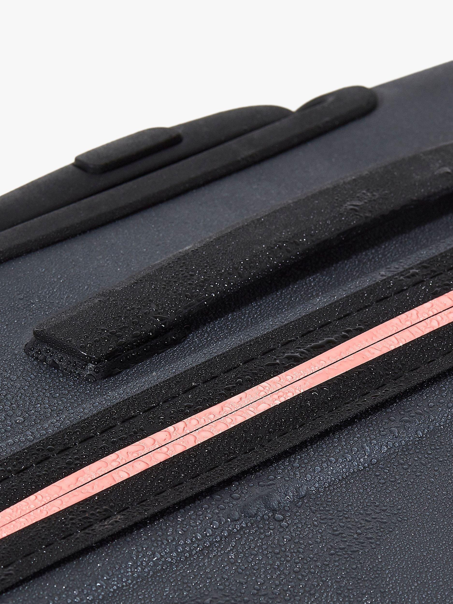 8 smooth rolling wheels and a telescopic, push-button handle will help you glide effortlessly on your travels.