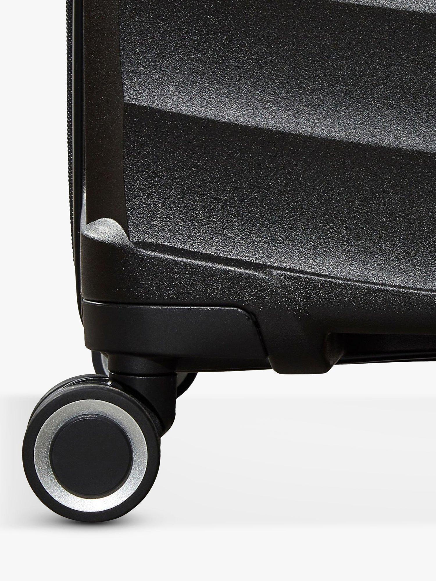8 smooth rolling wheels and a telescopic, push-button handle will help you glide effortlessly on your travels.