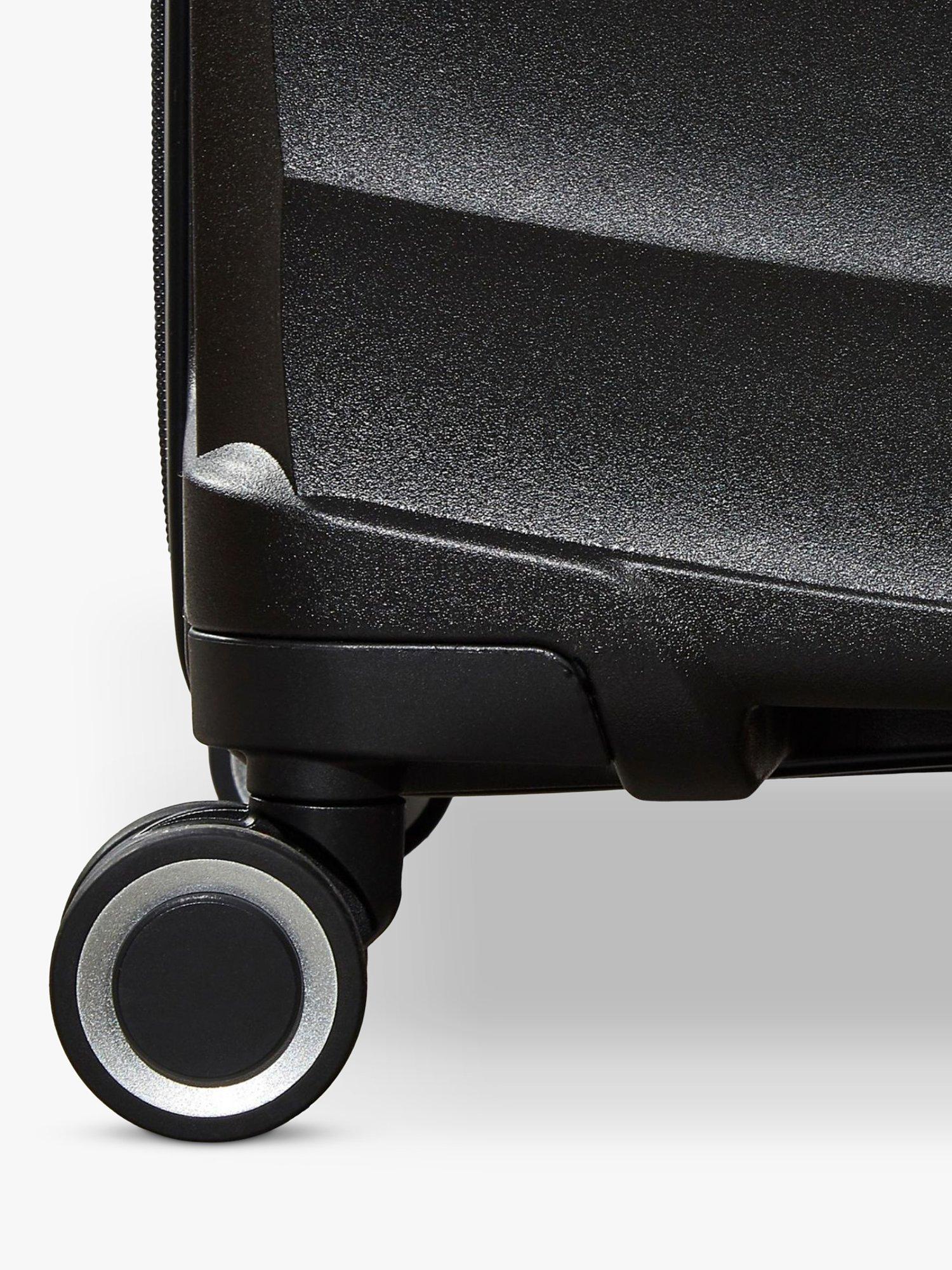 8 smooth rolling wheels and a telescopic, push-button handle will help you glide effortlessly on your travels.