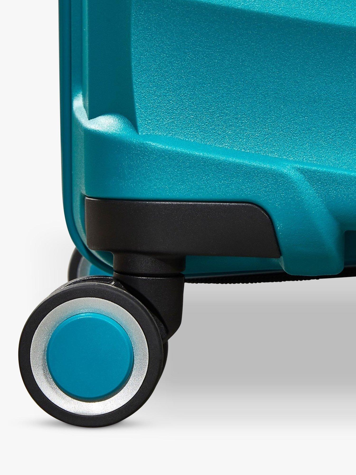 8 smooth rolling wheels and a telescopic, push-button handle will help you glide effortlessly on your travels.