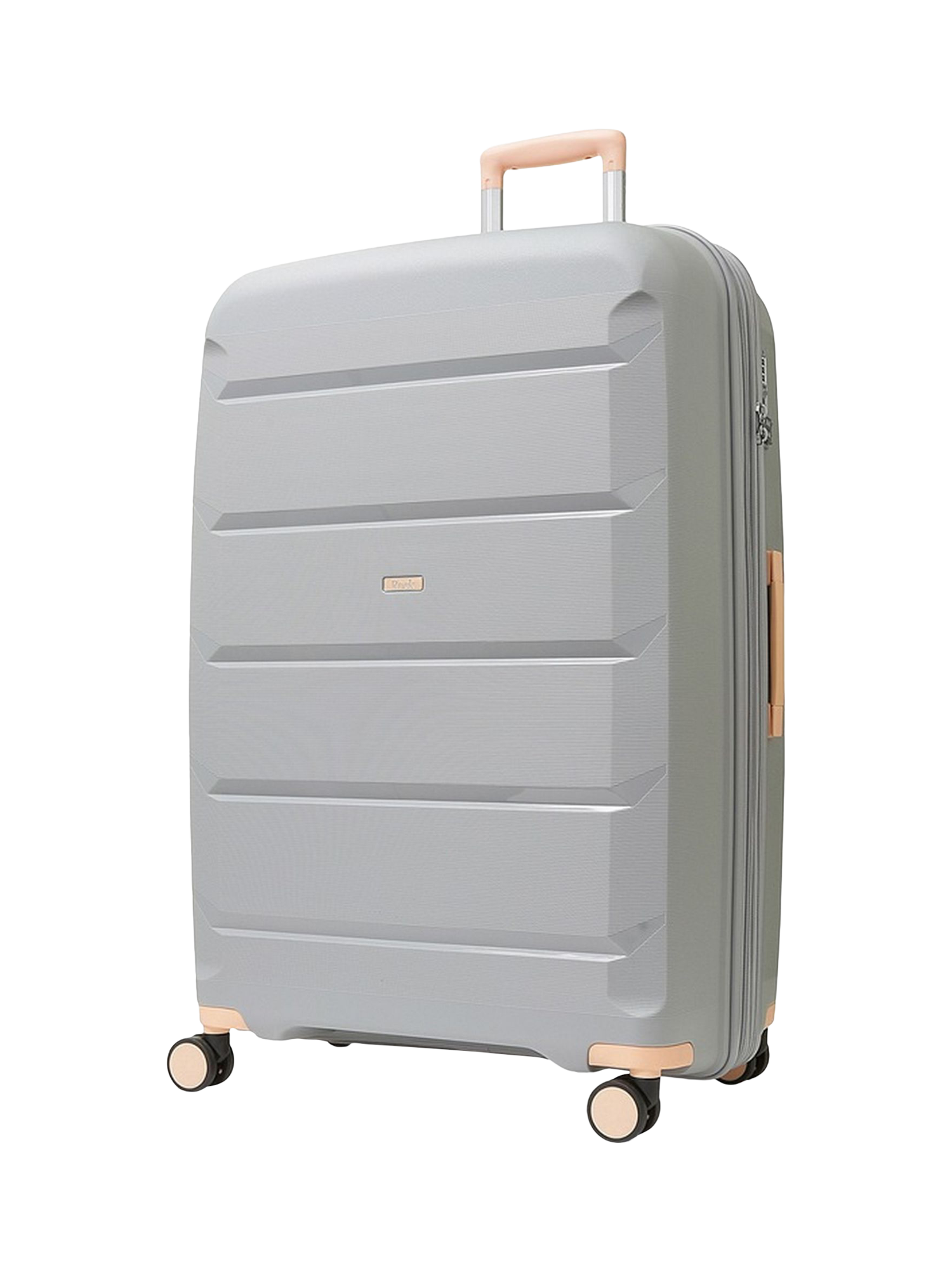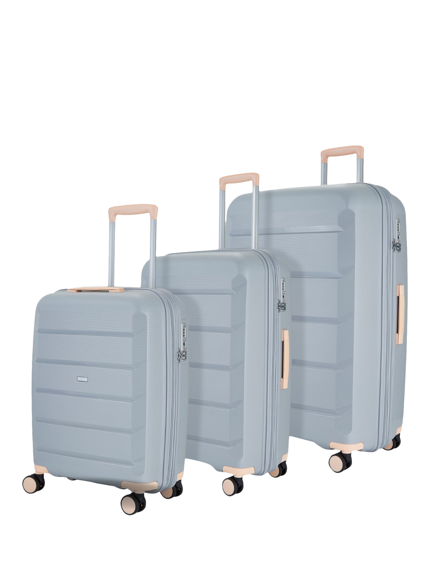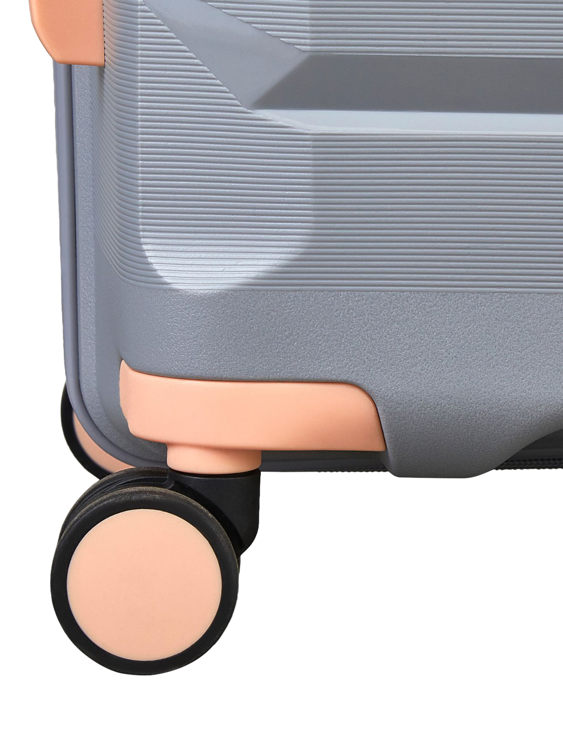 RockTulum 8-Wheel Expandable Suitcase Set, 3 Piece, Grey/Peach