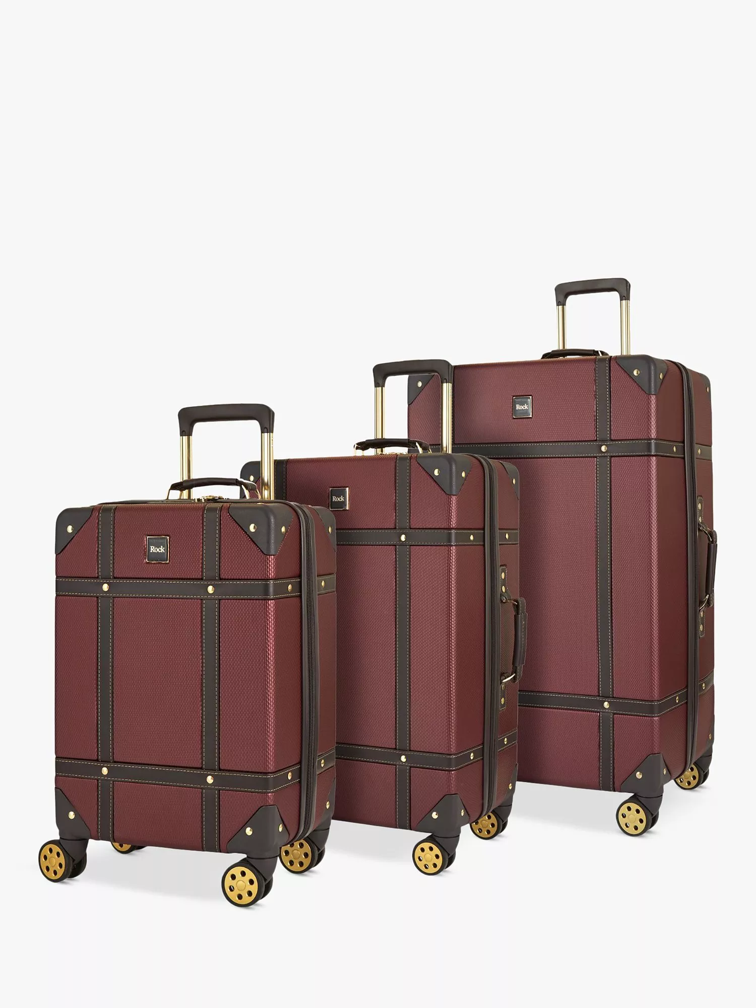 The fashion forward trunk design of the Vintage embodies a classic timeless look with contemporary lightweight construction and strong, durable features. They’re made of an impact-resistant, hard shell ABS material. And tough, reinforced corners protect belongings from all the bashes and bumps of baggage handling. The interior has luxurious soft touch lining, a zipped pocket, and a mesh divider section. The design also features a convenient zipped inside pocket and elasticated packing straps to keep your clothes securely in place. The 3 cases can be nested inside one another to save space when not in use.