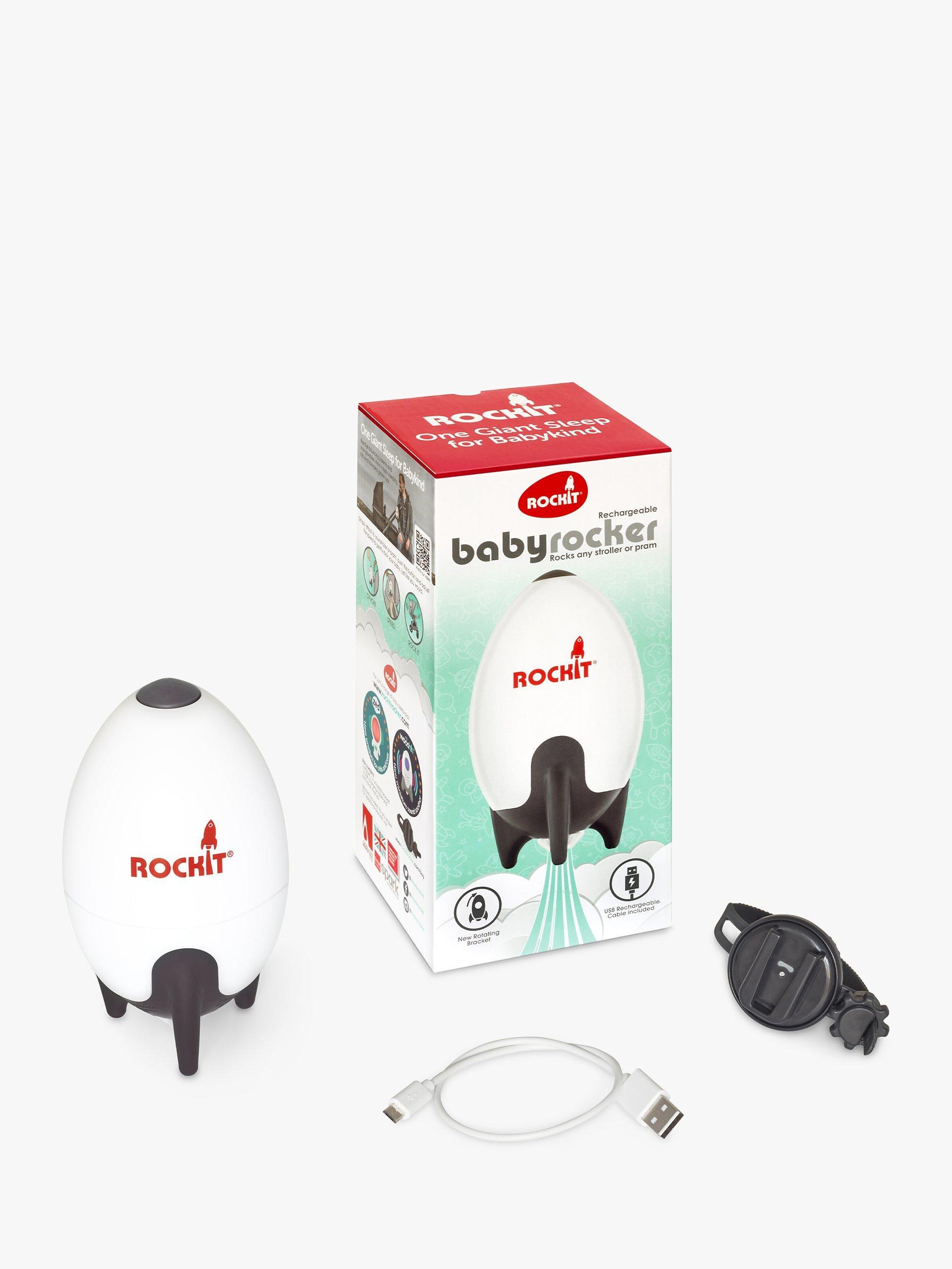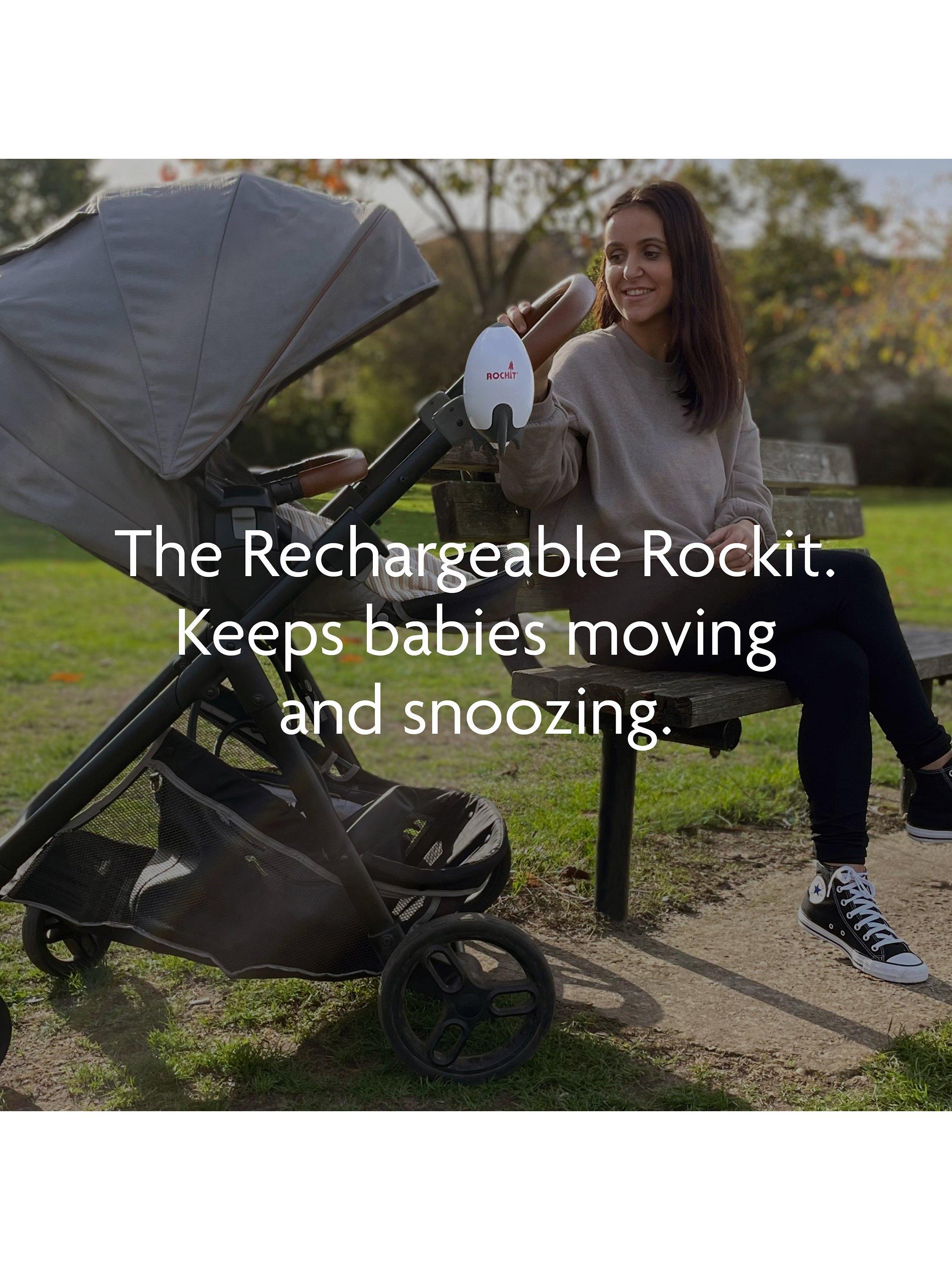 Does your little one wake up as soon as the buggy stops moving? The Rockit will keep rocking so you don’t have to! Created to help parents on the go, this handy must-have accessory keeps babies moving and snoozing. Simply attach it to a pram or stroller, push the button, and adjust the speed to gently rock baby. It's even better now with a rotatable bracket and rechargeable functionality.