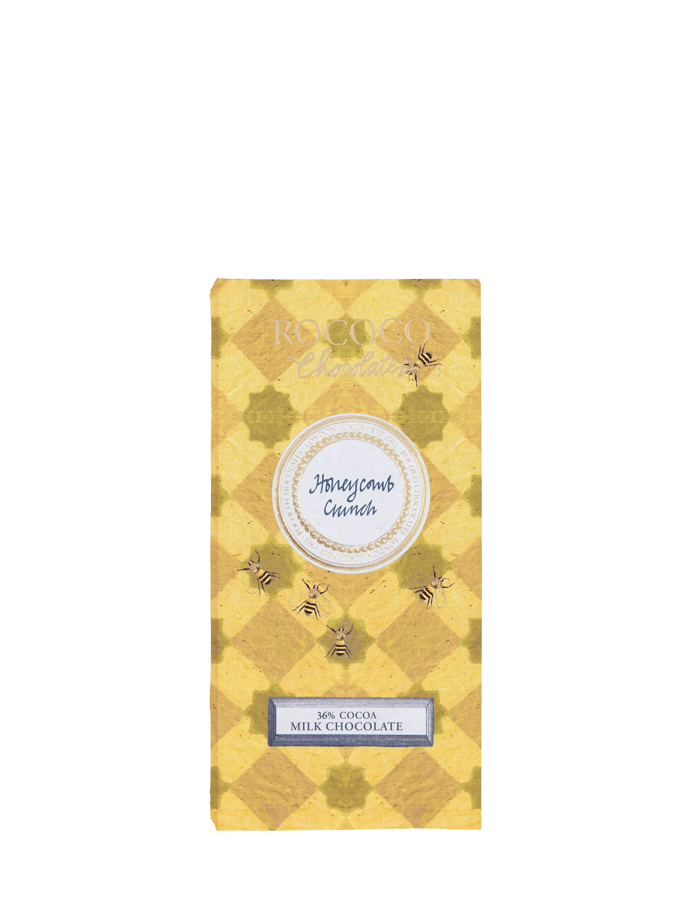 Rococo's signature milk chocolate is combined with golden, crisp honeycomb pieces for a subtle crunch - for those who enjoy sweetness, this is a sophisticated twist on a childhood favourite, for a trip down memory lane.