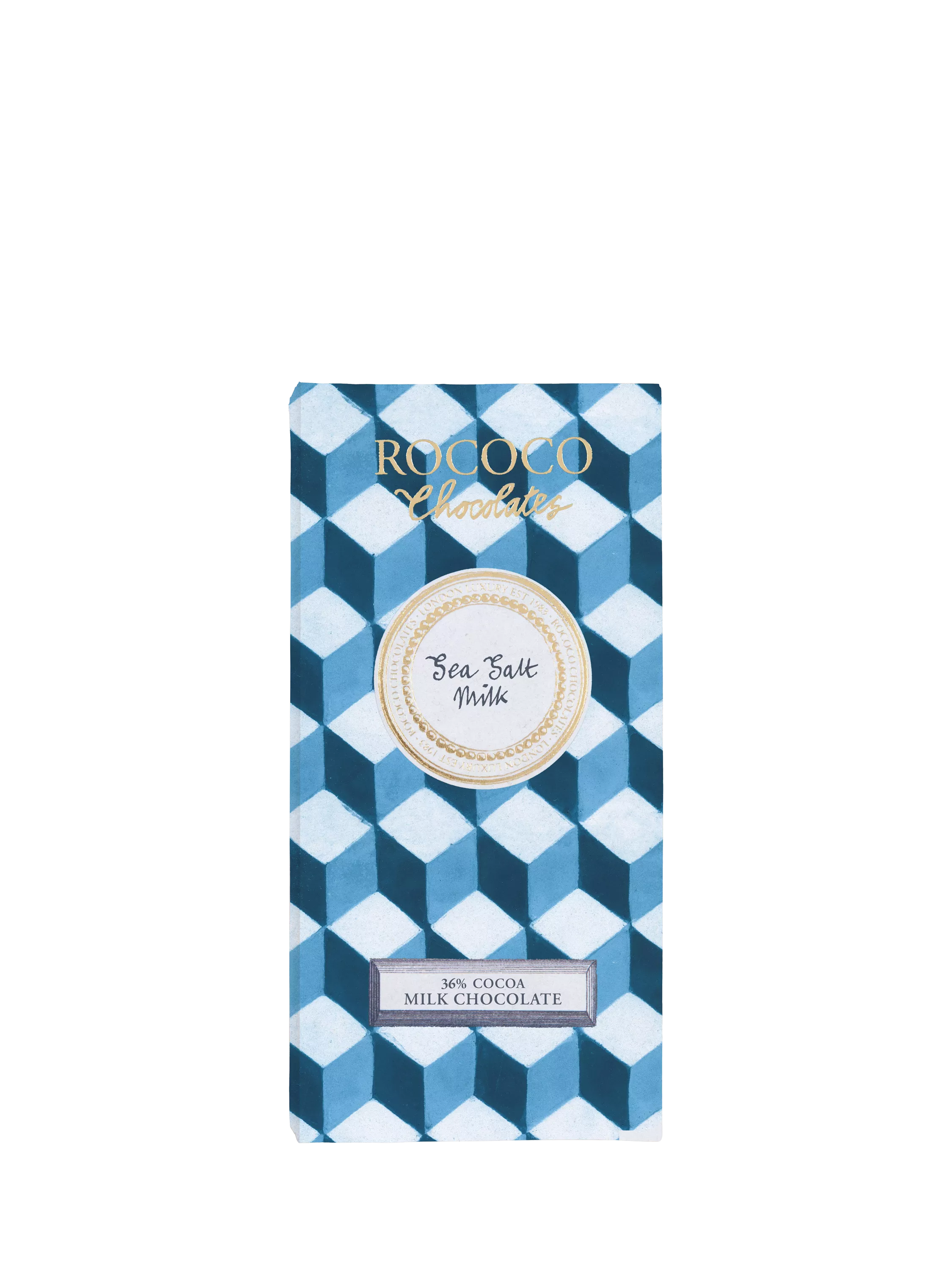 A taste inspired by the seaside. A delicious mingling of Rococo's 41% signature milk chocolate and a touch of Anglesey sea salt which enhances the natural creaminess and richness of the chocolate.