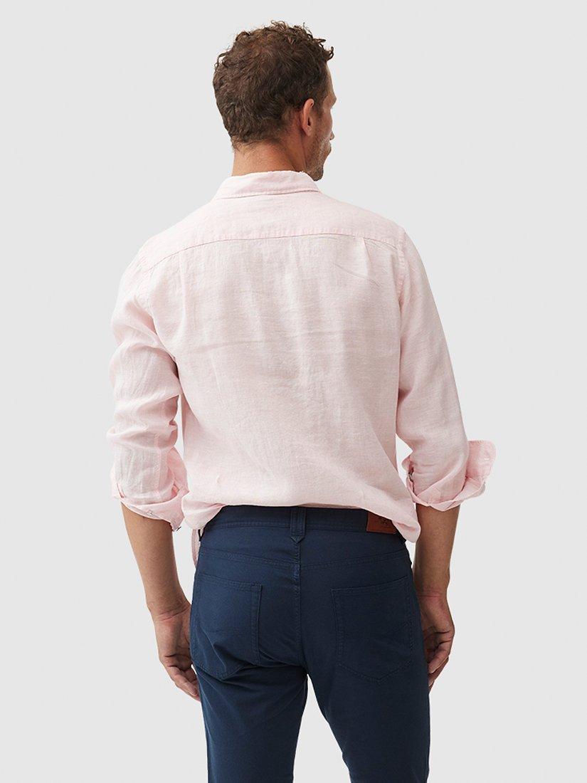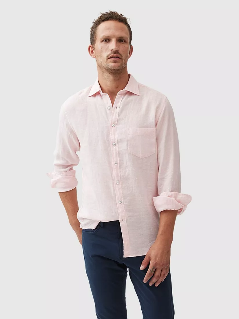 Rodd & Gunn offers a 2-year guarantee against faulty workmanship on this product. This shirt is woven from yarns that feature a unique delave wash, which lends the fabric a slightly faded look and soft feel. Milled in Italy, from premium linen harvested in France and Belgium and certified by European Flax. Pre-washed for easy going feel, the fabric will continue to soften over time and with each and every wash.