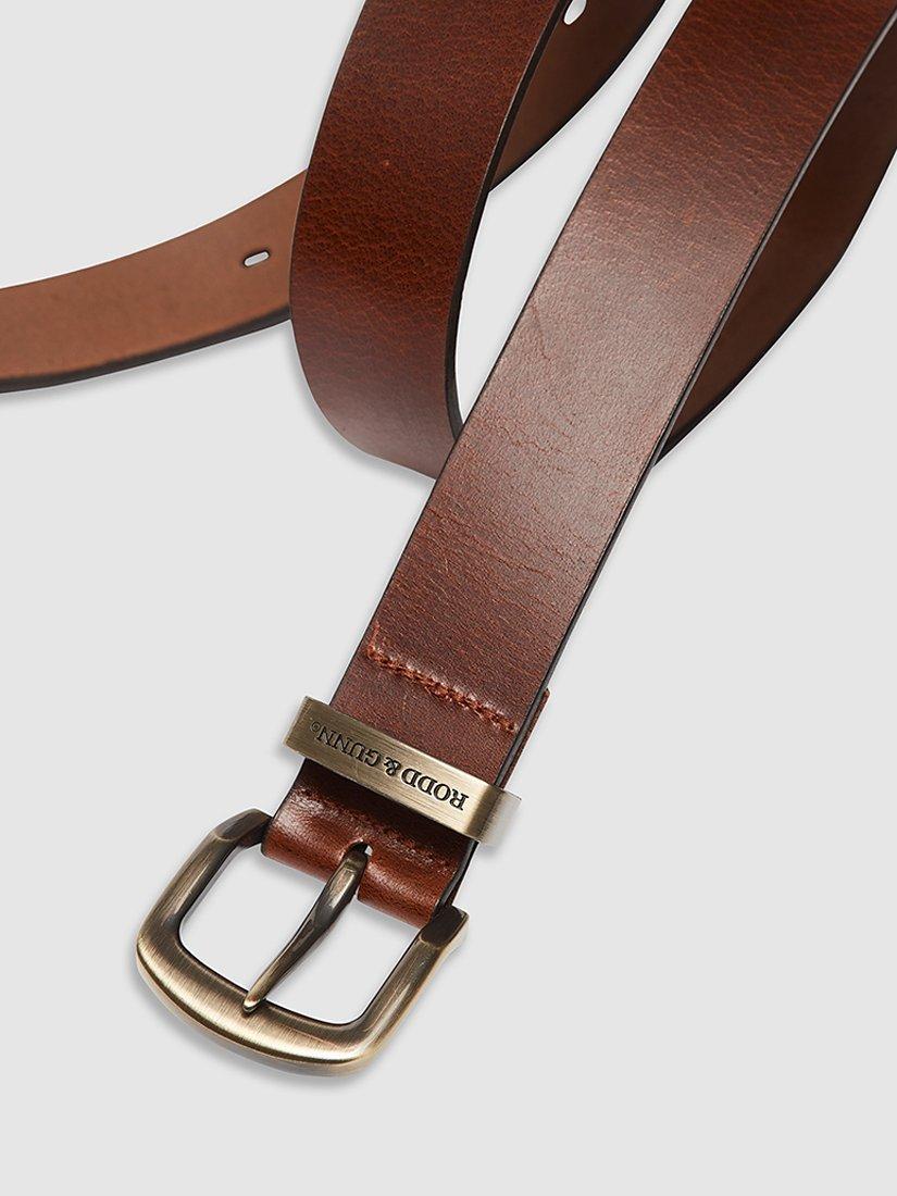 Rodd & Gunn offers a 2-year guarantee against faulty workmanship on this product. The Farmlands Belt is crafted in Australia from thick bovine leather (circa 3.5- 4.2mm) and features a sturdy buckle and Rodd & Gunn keeper. The belt is 38mm wide, and features our pointer heat embossed on the belt end.