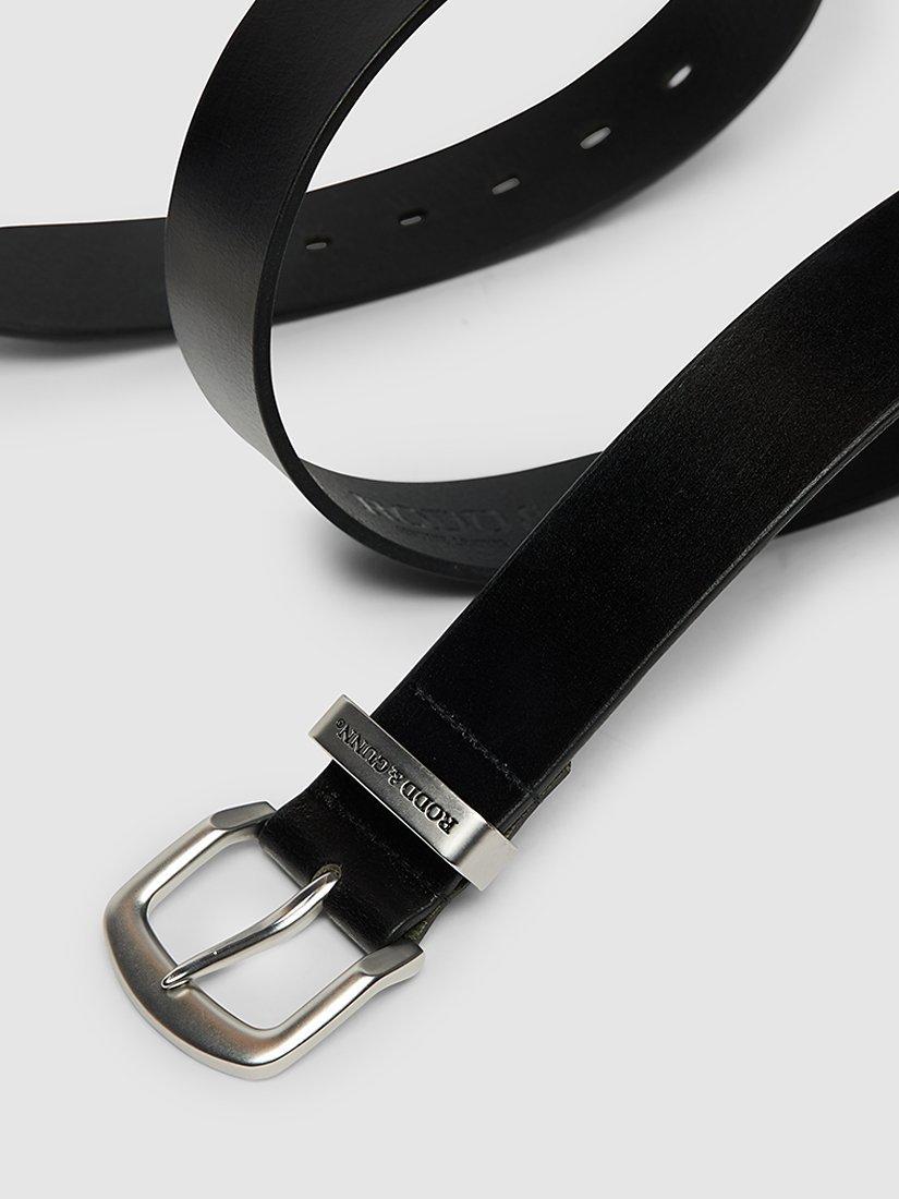 Rodd & Gunn offers a 2-year guarantee against faulty workmanship on this product. The Farmlands Belt is crafted in Australia from thick bovine leather (circa 3.5- 4.2mm) and features a sturdy buckle and Rodd & Gunn keeper. The belt is 38mm wide, and features our pointer heat embossed on the belt end.