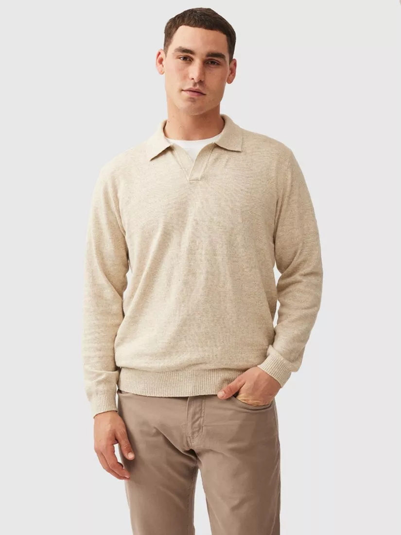 With a retro open collar and rib back this long-sleeve polo is made from soft and lightweight USA-grown cotton. The melange yarn adds depth of color and texture making it a comfortable and stylish piece.