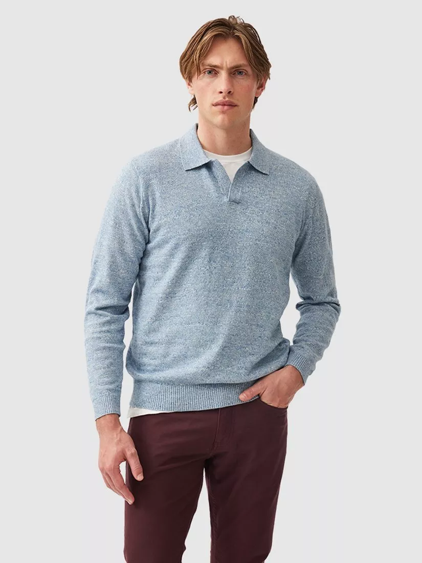 With a retro open collar and rib back this long-sleeve polo is made from soft and lightweight USA-grown cotton. The melange yarn adds depth of color and texture making it a comfortable and stylish piece.
