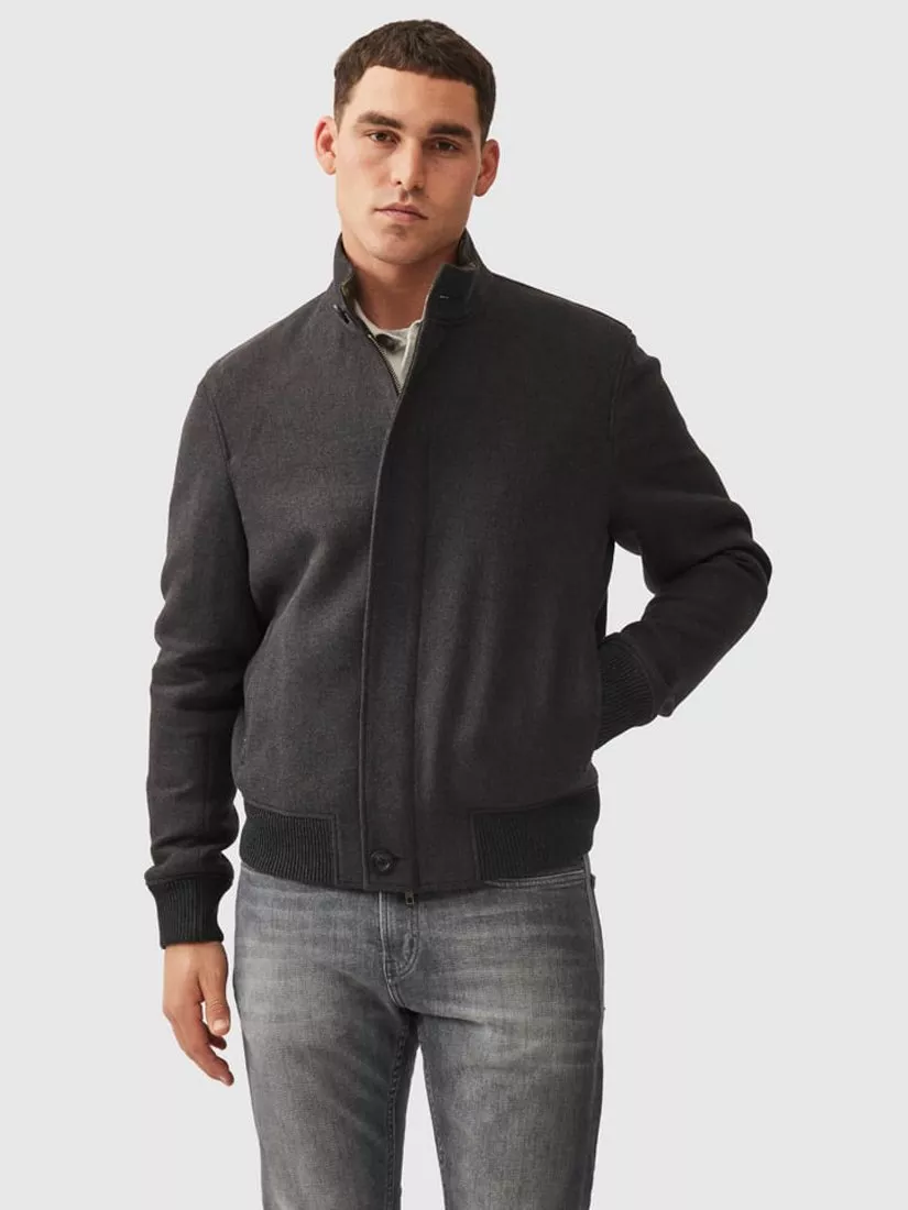 Crafted from premium organic cotton, this modern bomber jacket is sleek and sophisticated. Featuring a refined stand collar and a hidden storm flap front closure, this jacket exudes a clean and polished look.