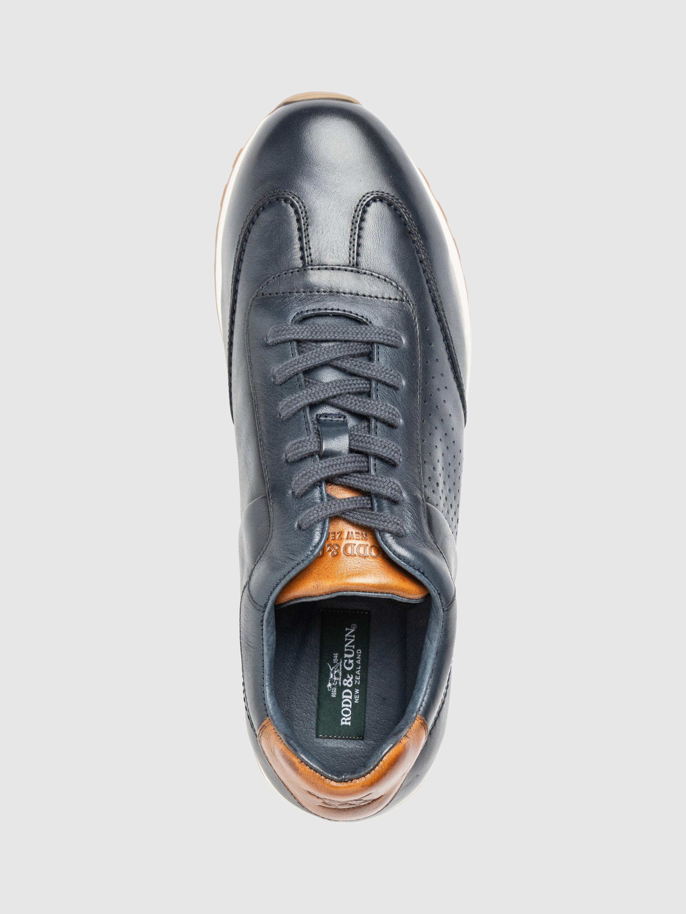 The Otago Trainer is a retro inspired trainer crafted from soft milled (tumbled) leather, highlighting the natural grains. The dual density rubber outsole delivers a perfect balance of comfort and style and features a leather veneer insert. The upper detail features a perforated pattern that forms a stripe like effect. The Otago is leather and fabric lined, featuring a leather covered removable footbed for superior comfort. The Otago is paired perfectly with Denim, chinos or shorts.