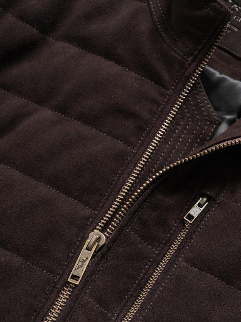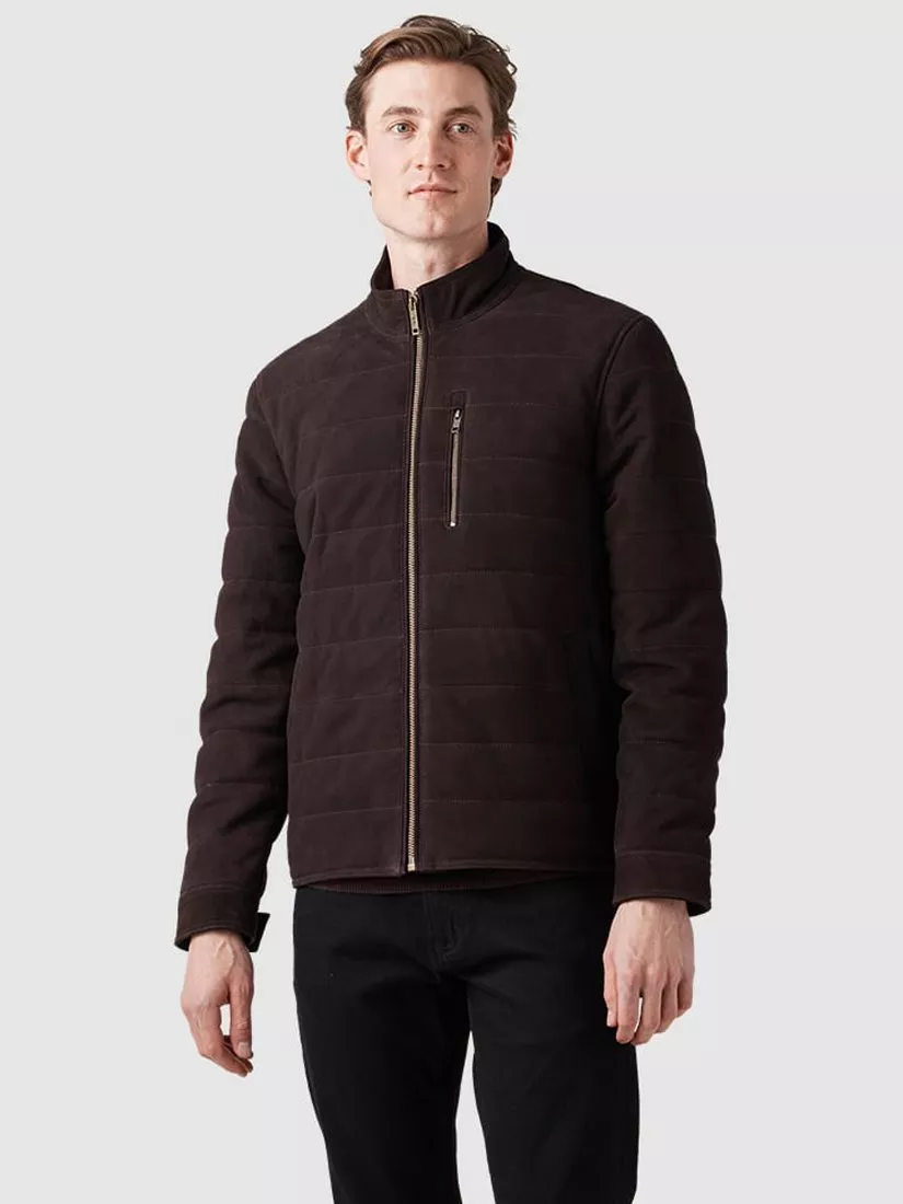This luxurious leather jacket is crafted from a premium genuine lamb nubuck, with water-resistant Scotchgard proofing for added durability. Quilted with Primaloft Hi-Loft Ultra insulation and detailed with hard-wearing YKK zips and press studs. A poly-blend lining adds a soft finish to the interior.