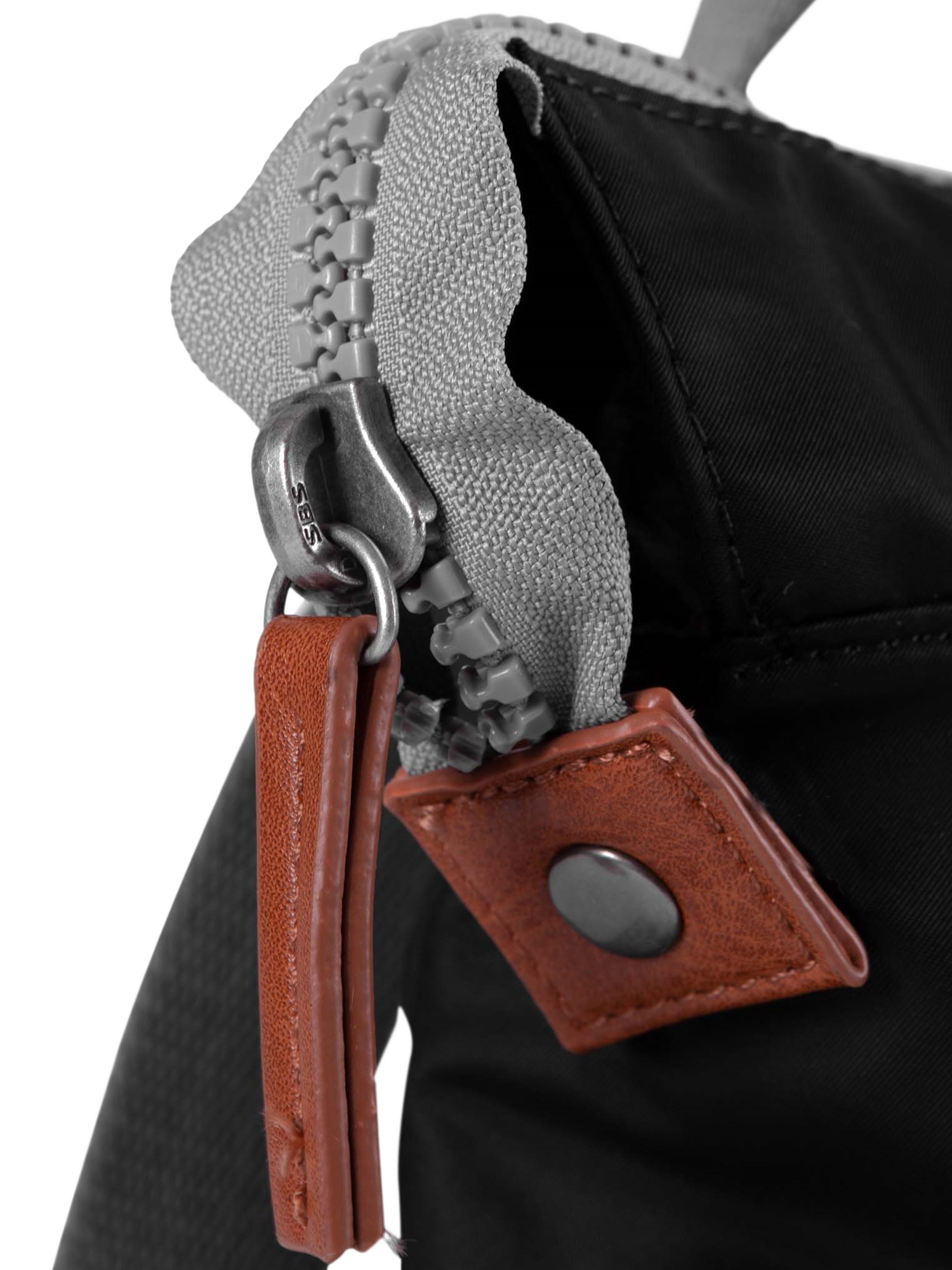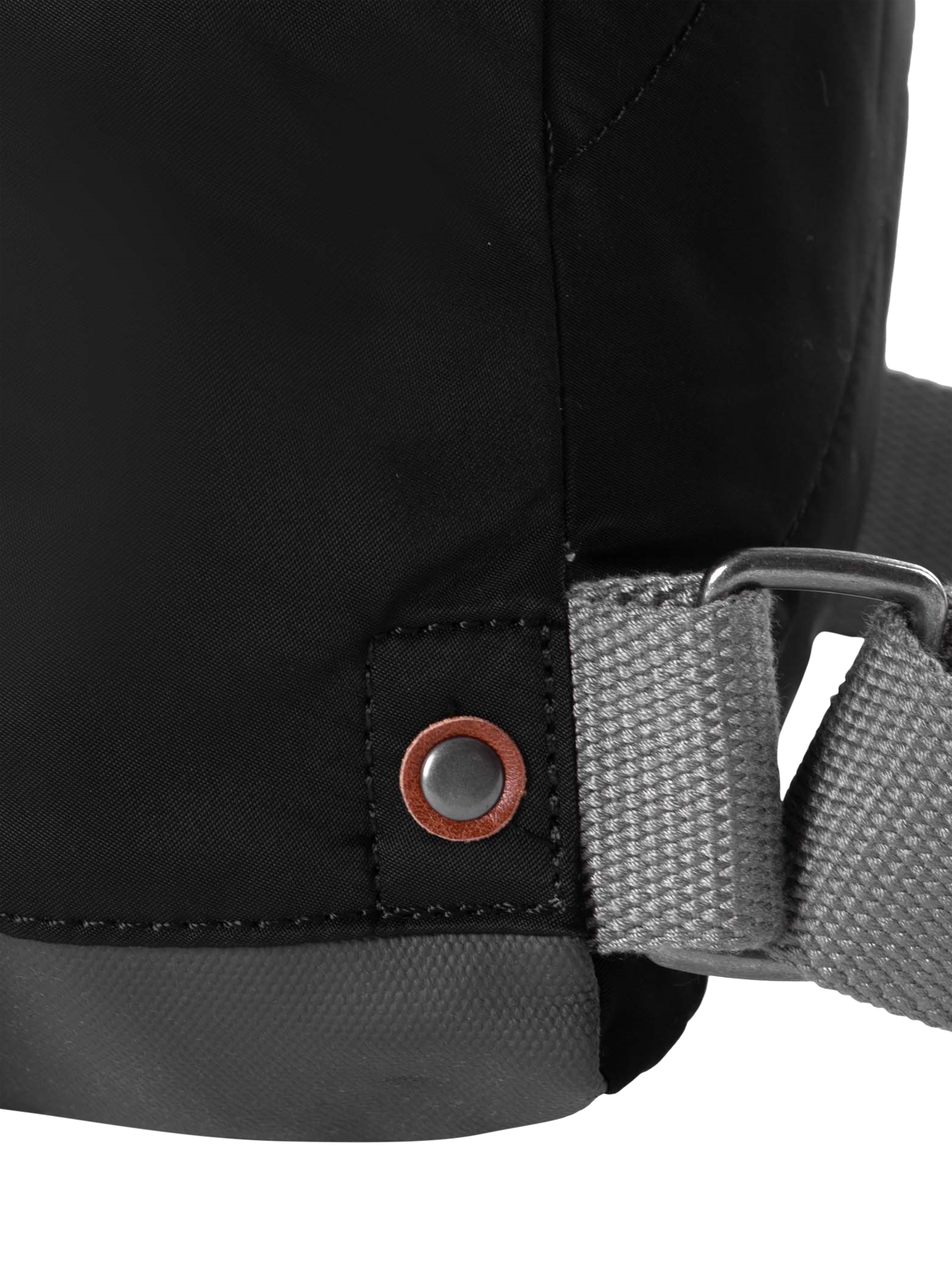 Nylon outer and canvas base made of triple-coated, weather-resistant recycled materials with recycled nylon lining. Made with galvanised, smoked, branded metal hardware. Sturdy, durable, chunky zips allow easy glide and quick opening for all ages. Cotton webbing, adjustable-length shoulder straps and wide loop handles ensure comfort. A vegan-friendly bag made with no animal products used.
