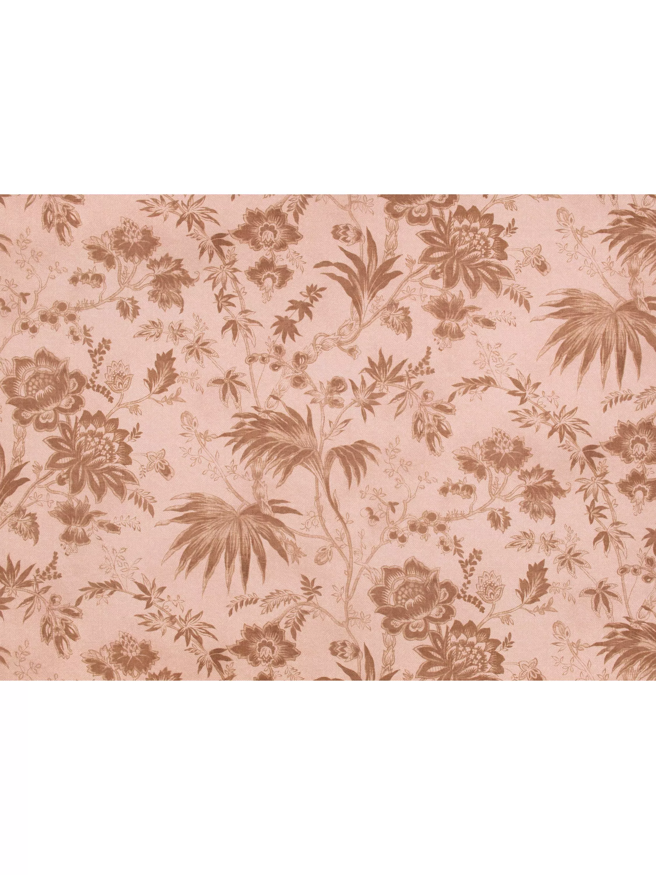 Exotic florals and tropical palm fronds depict a jubilant scene of flora and fauna, printed on a beautifully fluid linen blend ground. Inspired by a late 19th-century document, this decorative design has been recreated to include a subtle herringbone detail and deliberately aged appearance, perfectly demonstrating how classic and contemporary effortlessly combine.