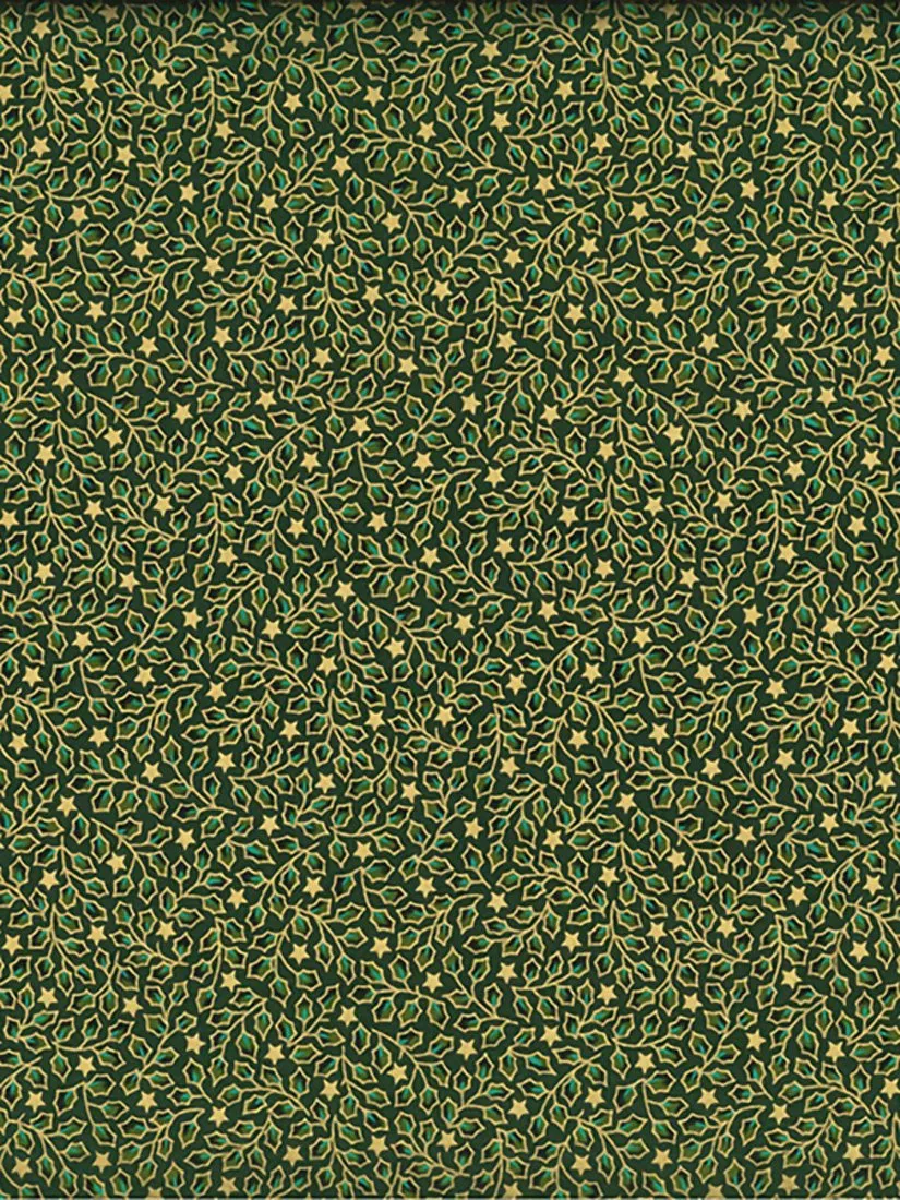 A dark green and gold holly leaf design in 100% cotton. Perfect for crafts and dressmaking.