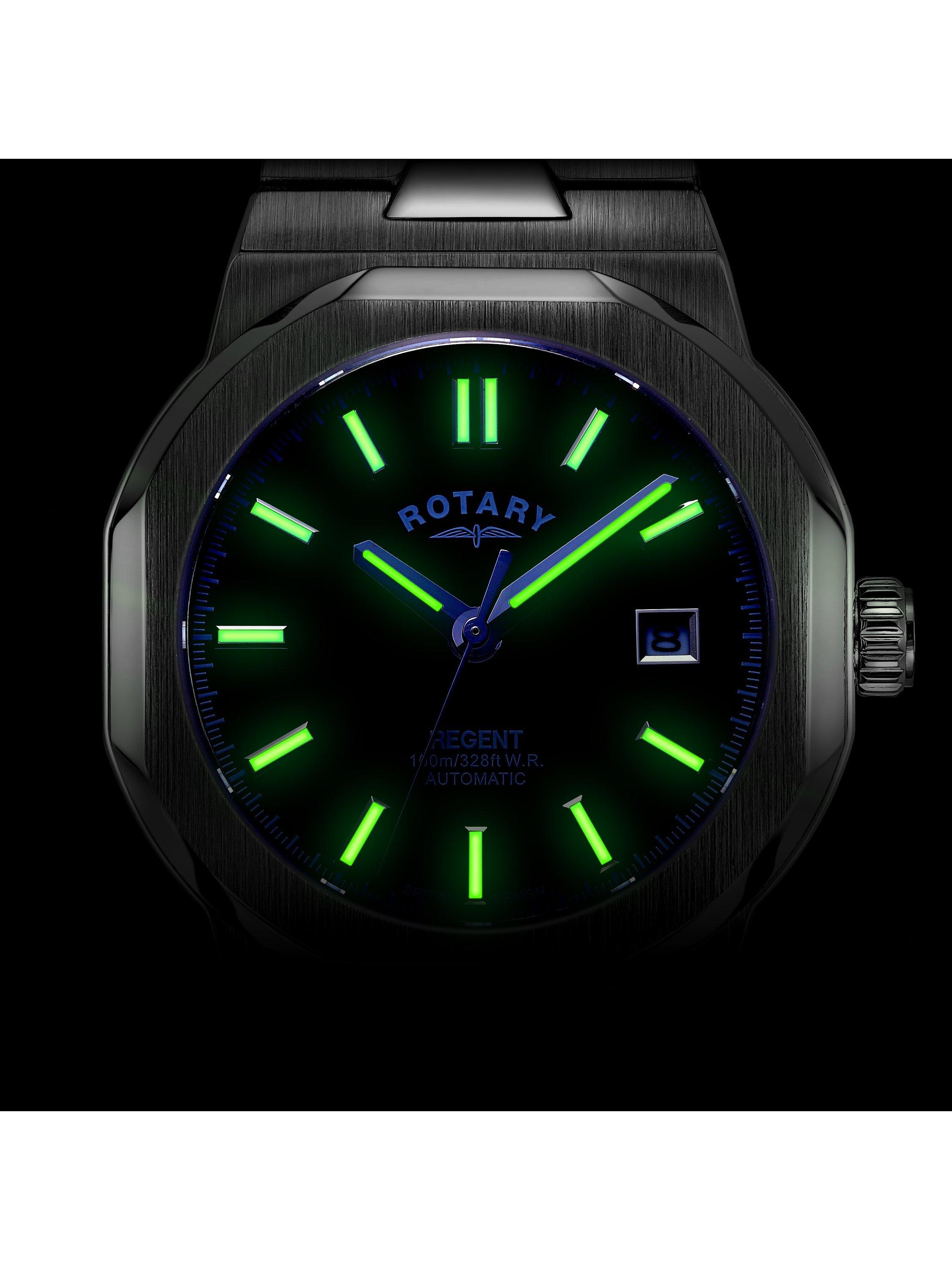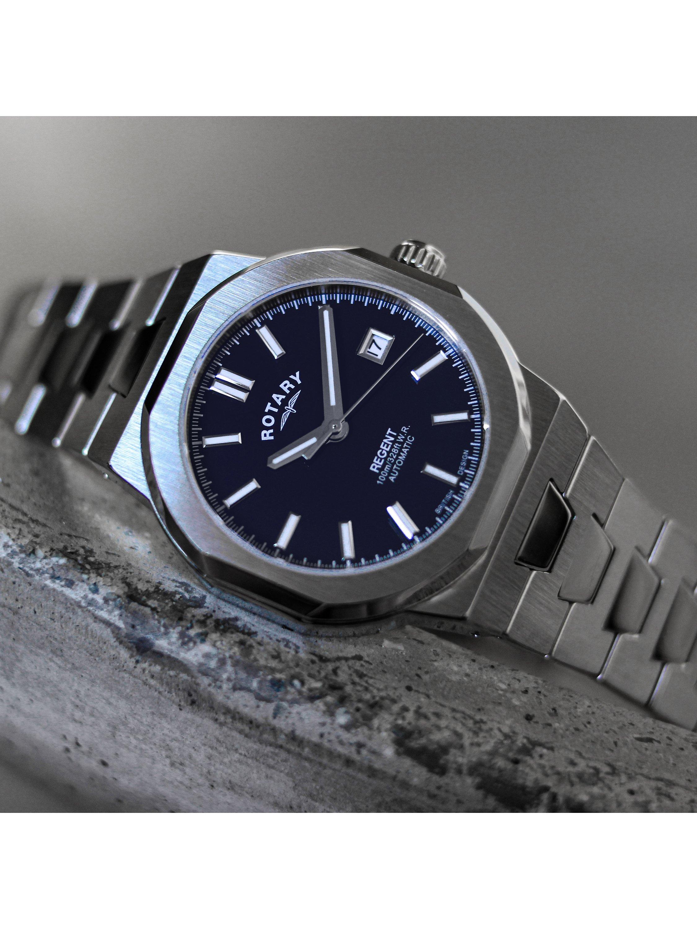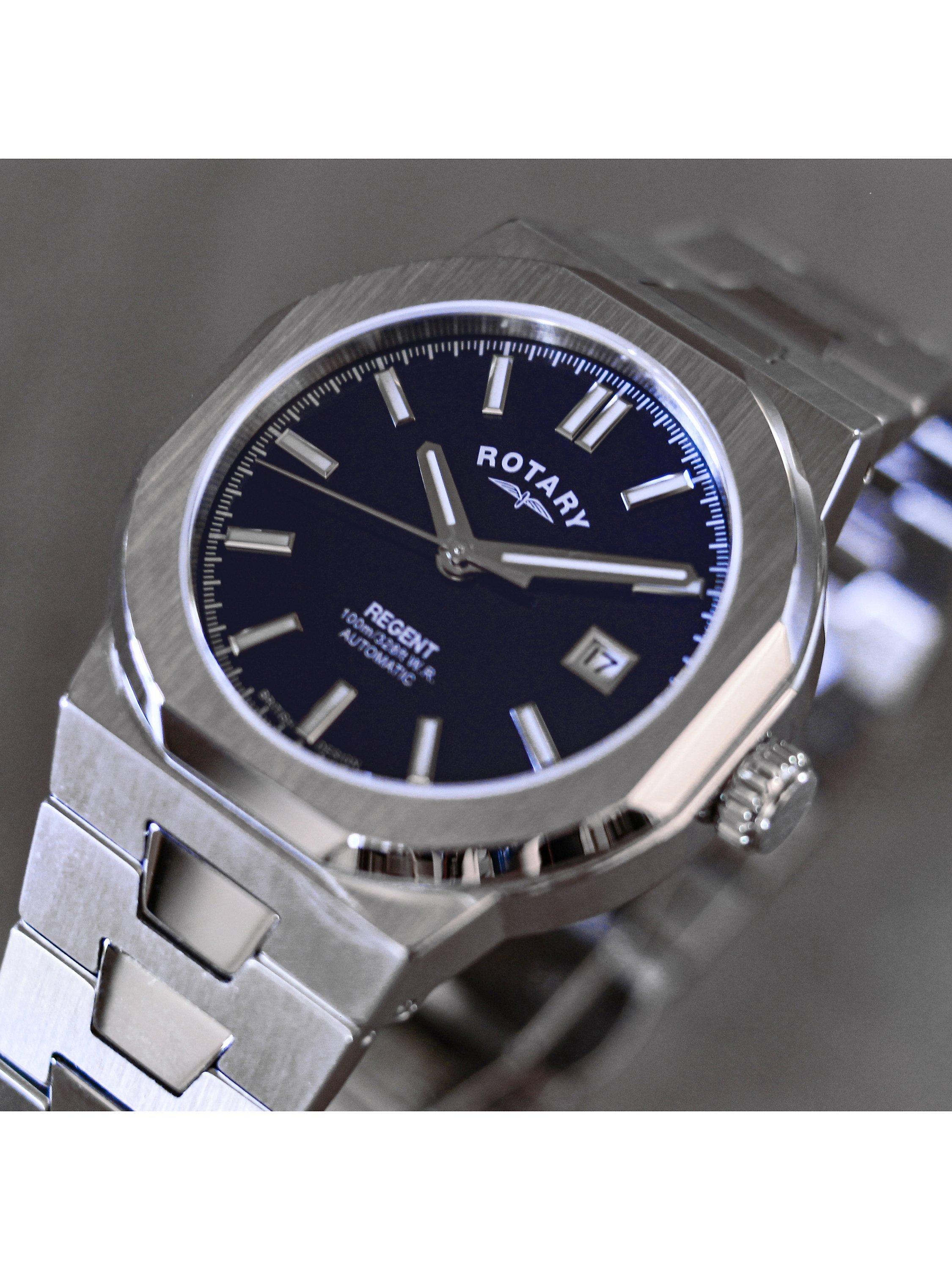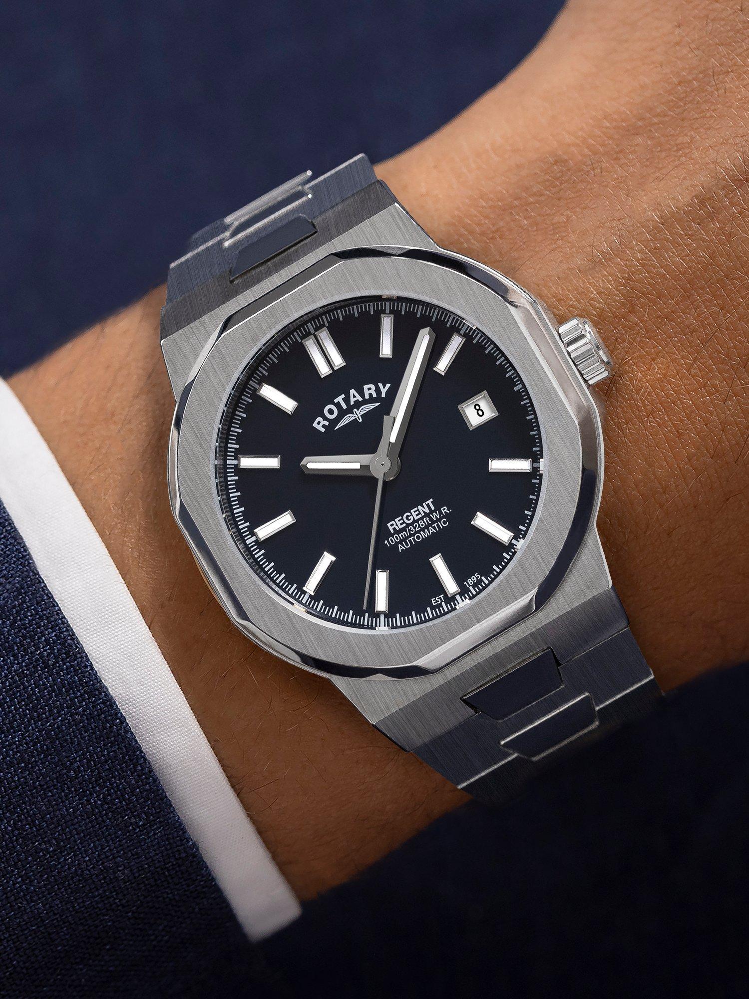 Regent is Rotary's premium sports collection that is optimised for precision and performance. This multi-faceted piece has a fine circular dial with an integrated tapered H-link bracelet. The watch is fitted a decorative open case back and faceted high-grade luminous index hour markers. Complete with a scratch-resistant and protective sapphire crystal glass.