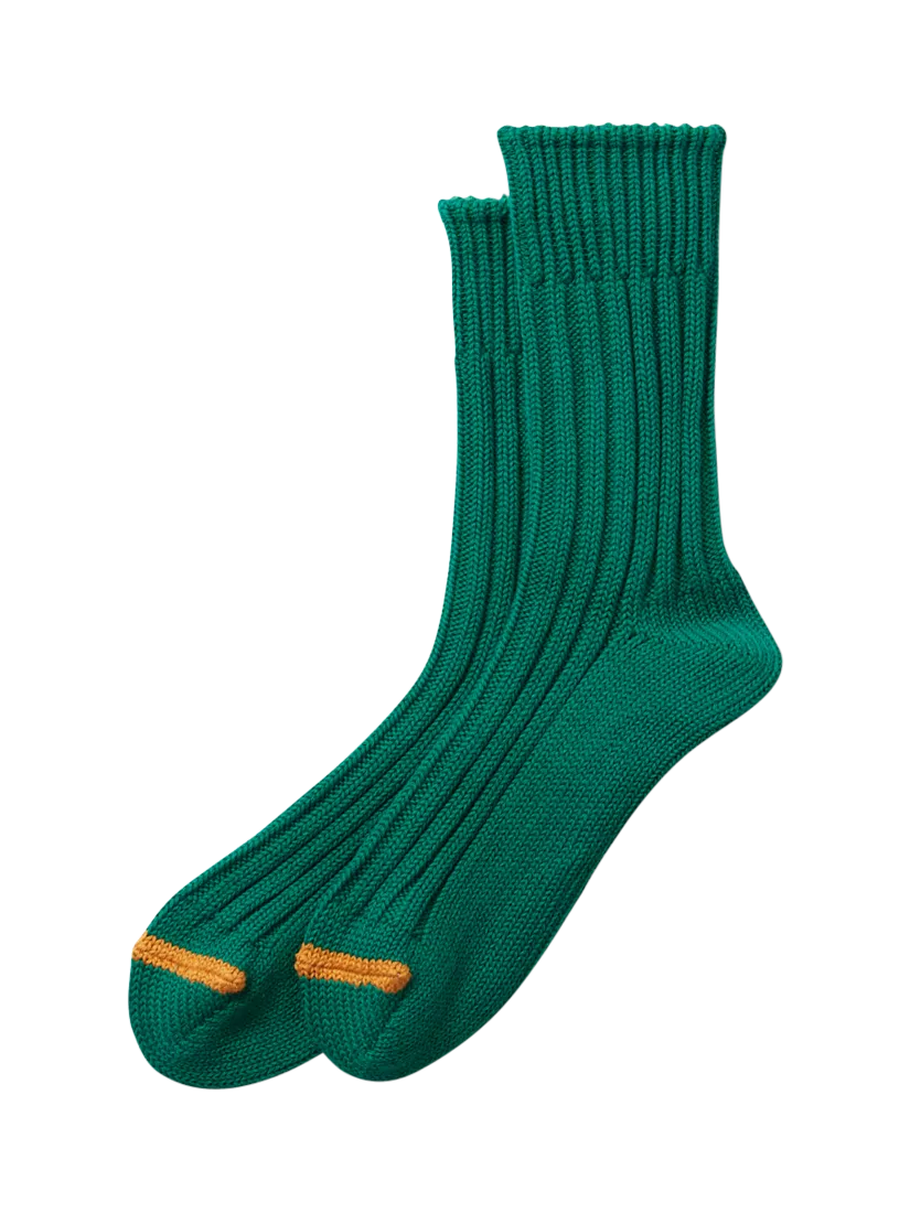 A single pair of socks from the famed Japanese brand ROTOTO. With ribbed texture they have contrast stitching at the toe.