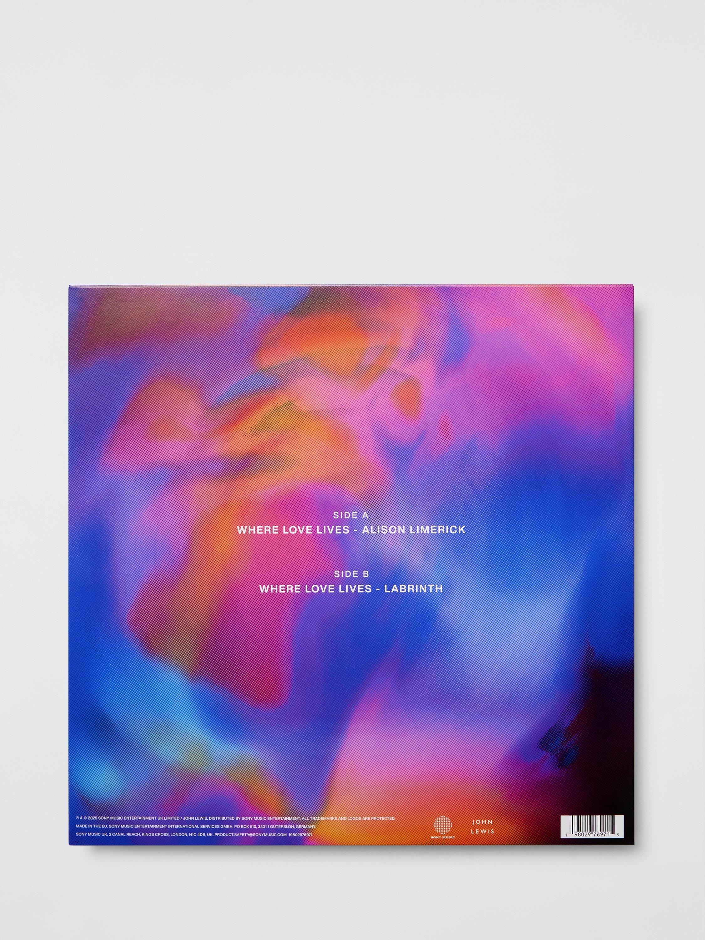 Featuring brand new club-inspired artwork, Side A of the vinyl treats music fans to Alison's early '90s original version of the track, still pounding with cultural resonance and a longtime favourite of DJs worldwide. Side B presents globally acclaimed UK artist and producer Labrinth's reimagination of 'Where Love Lives,' a genuinely unguarded take on the iconic hit, also featured in the Christmas ad.