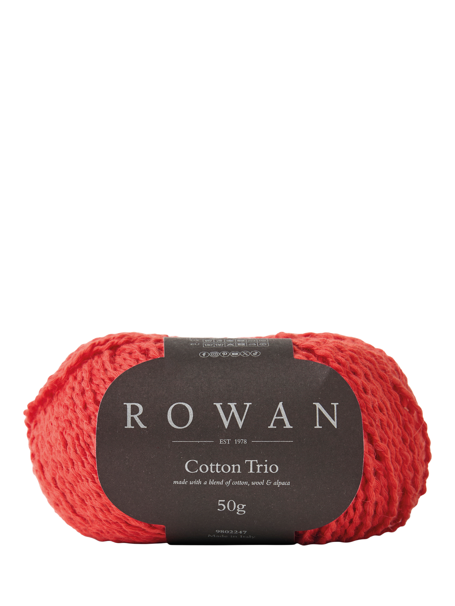 Cotton Trio is a luxurious and versatile yarn, blending natural fibres to create a soft, lightweight texture. The combination of cotton, wool and alpaca not only creates a wonderful softness, but also adds strength and texture, whilst its strand construction provides a smooth, slightly matte finish.