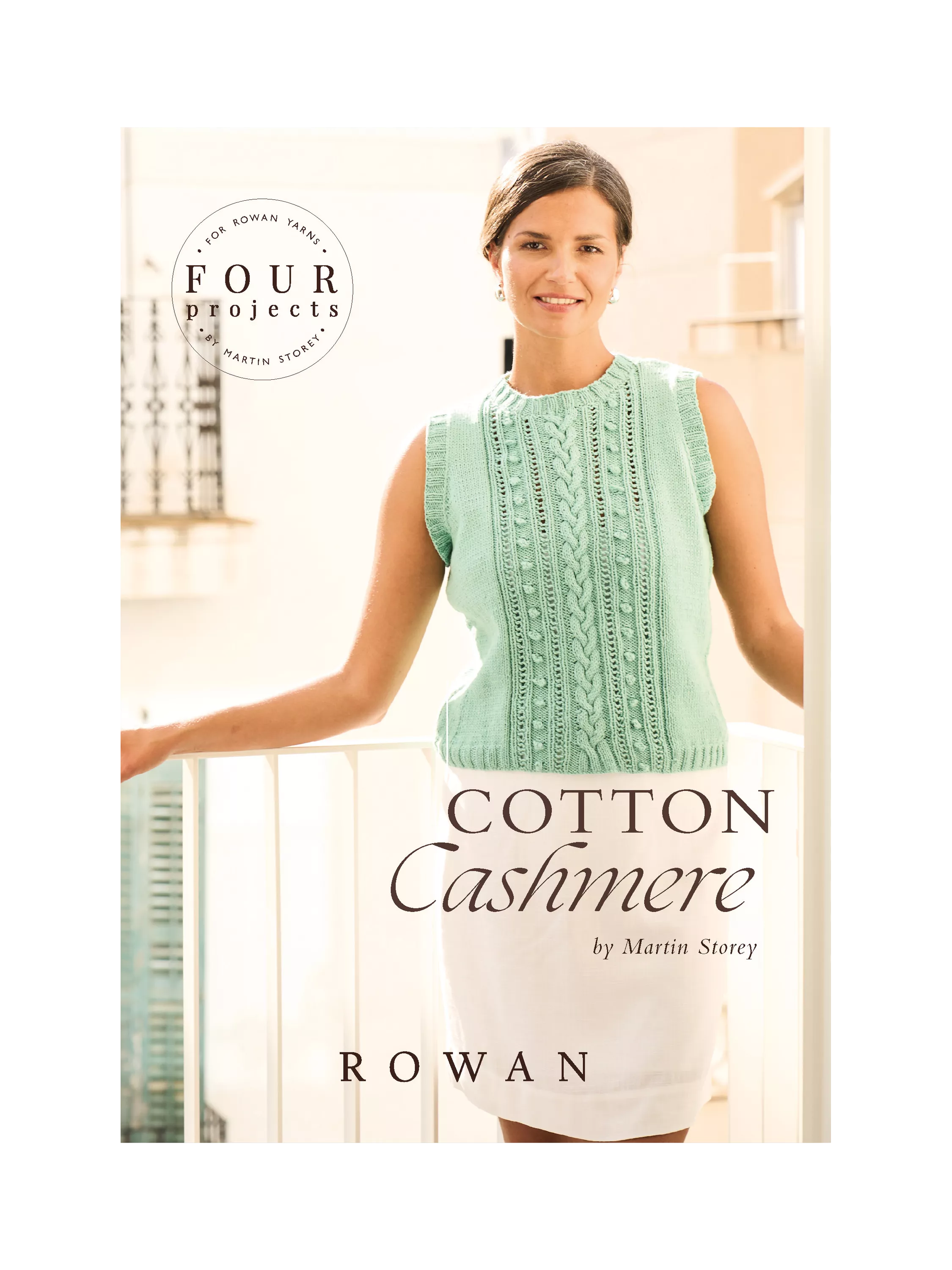 Martin Storey's collection of four easy-to-wear, lightweight summer pieces are knitted using Rowan's softly blended Cotton Cashmere. Choose from a lace and cable detail vest, a relaxed summer scarf, textured tee and eyelet sweater.