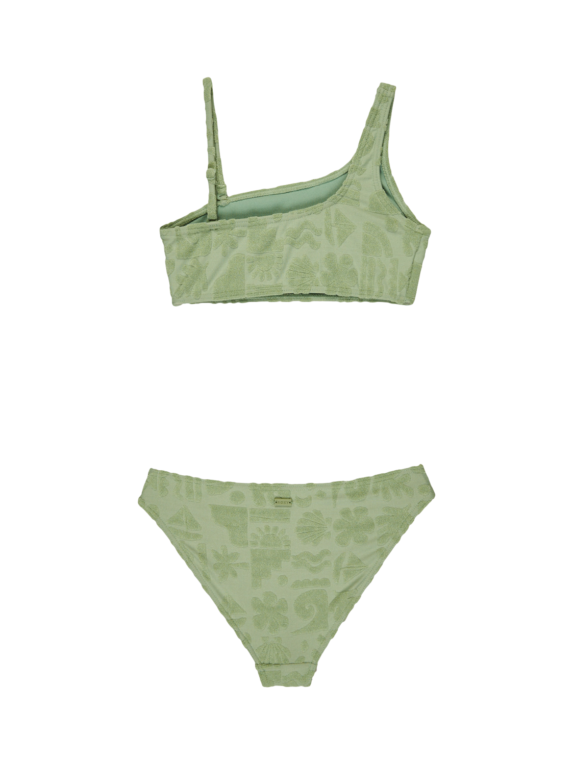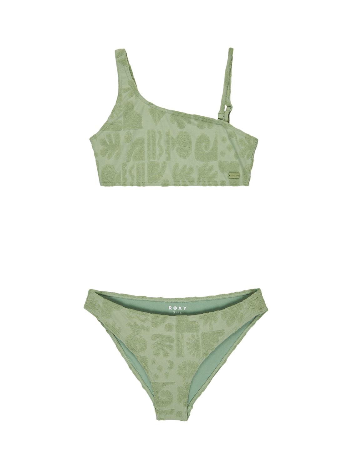 Two-piece swim set for girls 6 - 16. Features include: Recycled, soft, resistant and stretch 88% recycled polyester, 12% elastane blend fabric. Bralette set with removable pads for 12-16yrs and full coverage.