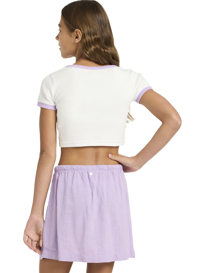 An easy fit mini skirt with an elasticised waist, complete with a fixed bow detail.