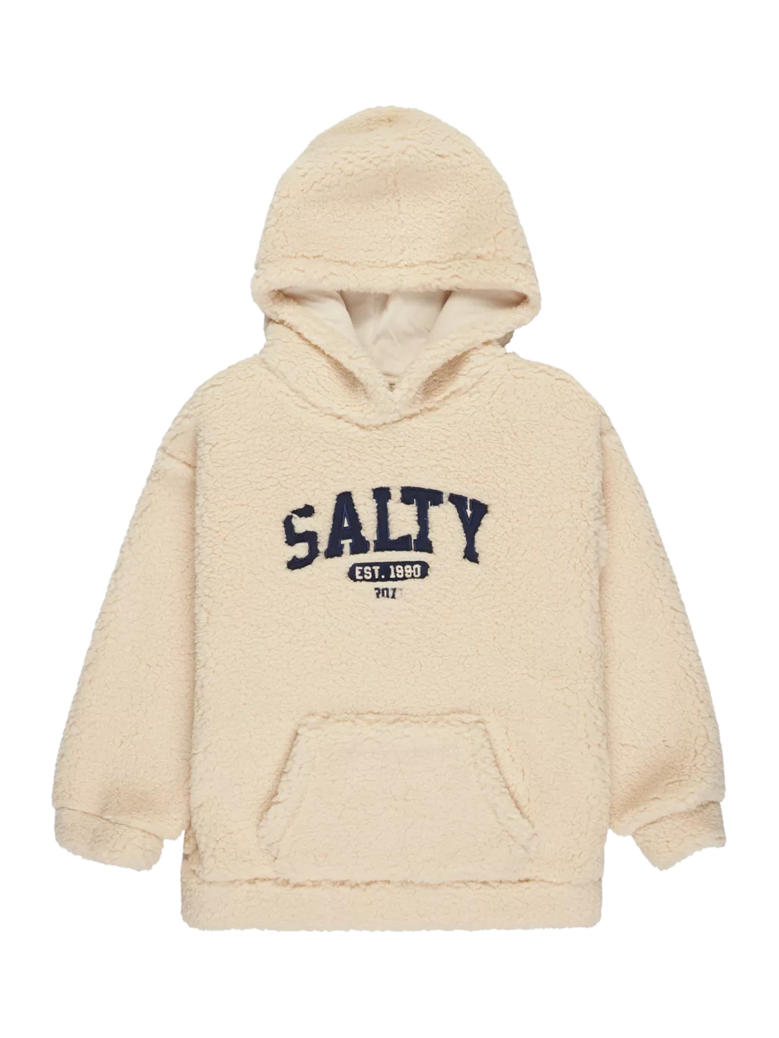 A cosy hooded fleece for girls aged 4-16, cut to a relaxed fit, and designed with a jersey hood lining, kangaroo pocket and artwork on the chest.