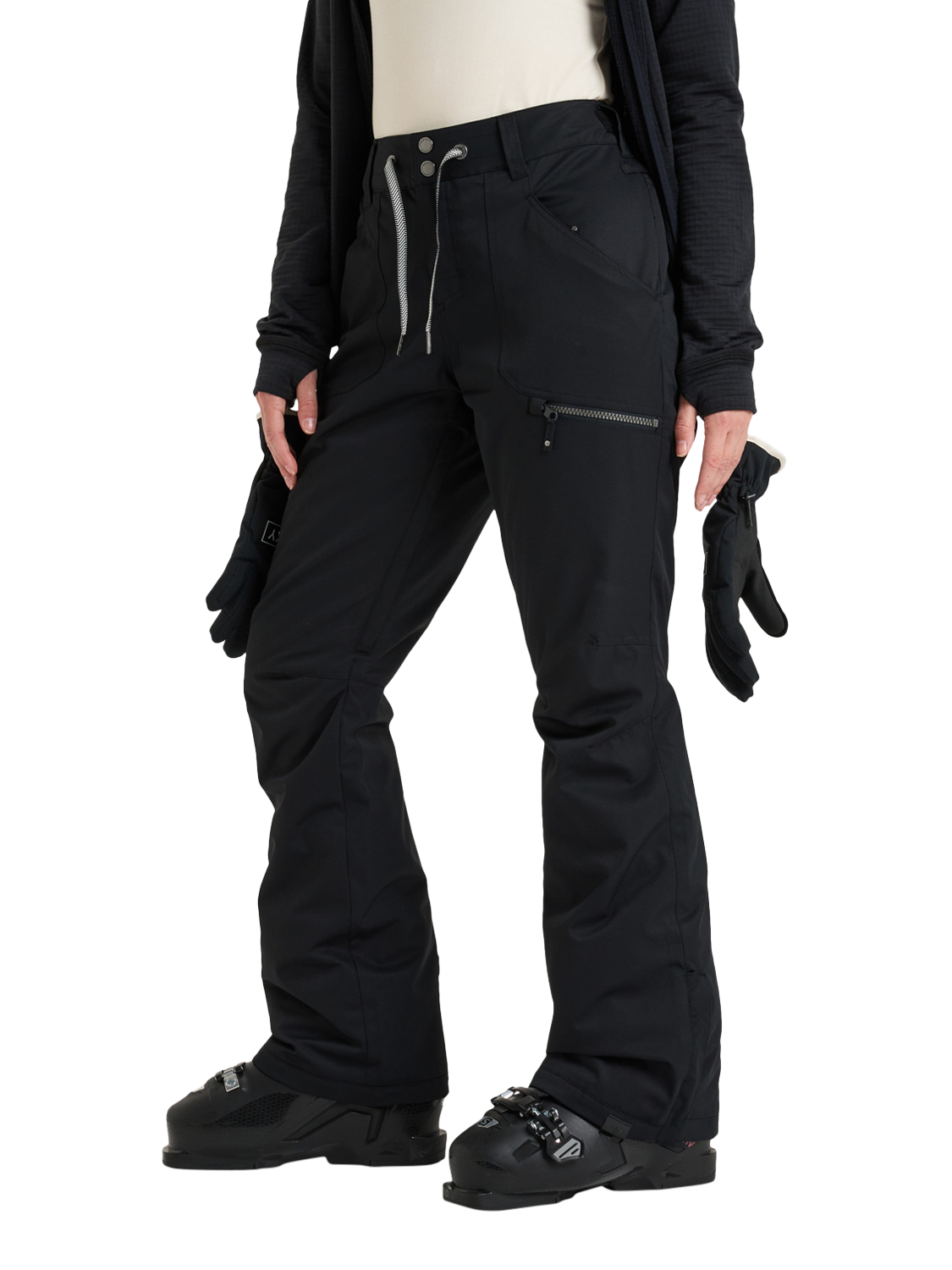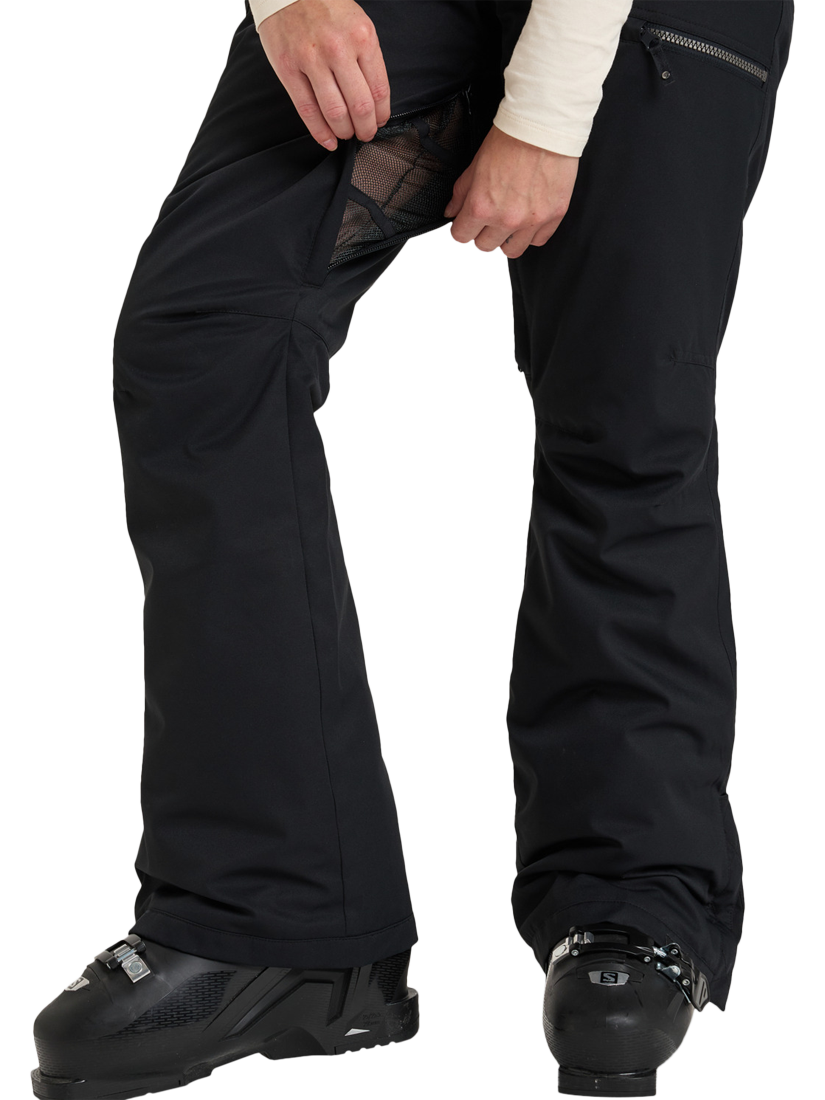 This is useful and thoughtful design for the slopes. The tailored fit offers a slimmer, contemporary look while maintaining full mobility. A precision fit is ensured by external waist adjusters and decorative drawcords. For essential temperature regulation, mesh-lined inner leg vents are included. Practical storage includes two zippered hand pockets, a thigh pocket, and two back pockets. Finally, the hem features a snapped leg gusset, taffeta boot gaiters, and a hem lift-up system—everything you need for a comfortable and confident day on the mountain.