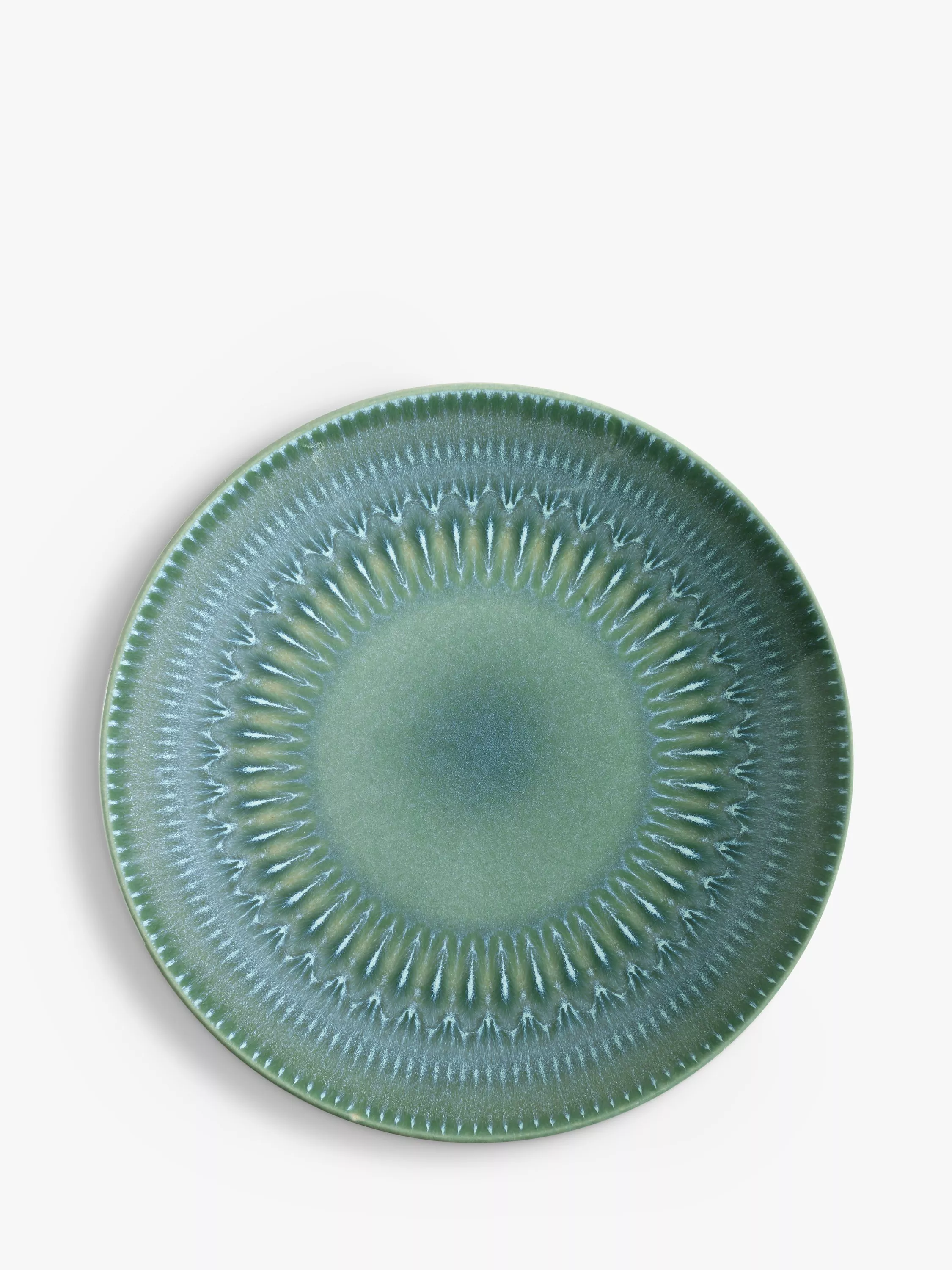 Inspired by intricate artwork found in the extensive archives at the Royal Botanic Gardens in Kew, London, this patterned dinner plate has a beautiful reactive glaze. The glazing technique creations slight variations from piece to piece, making each ceramic plate unique. Made of stoneware, it's dishwasher and microwave safe for everyday use.