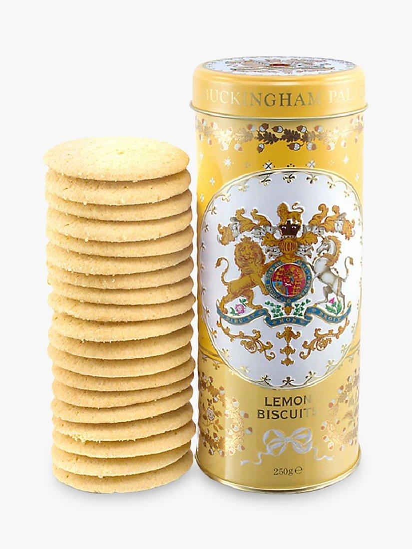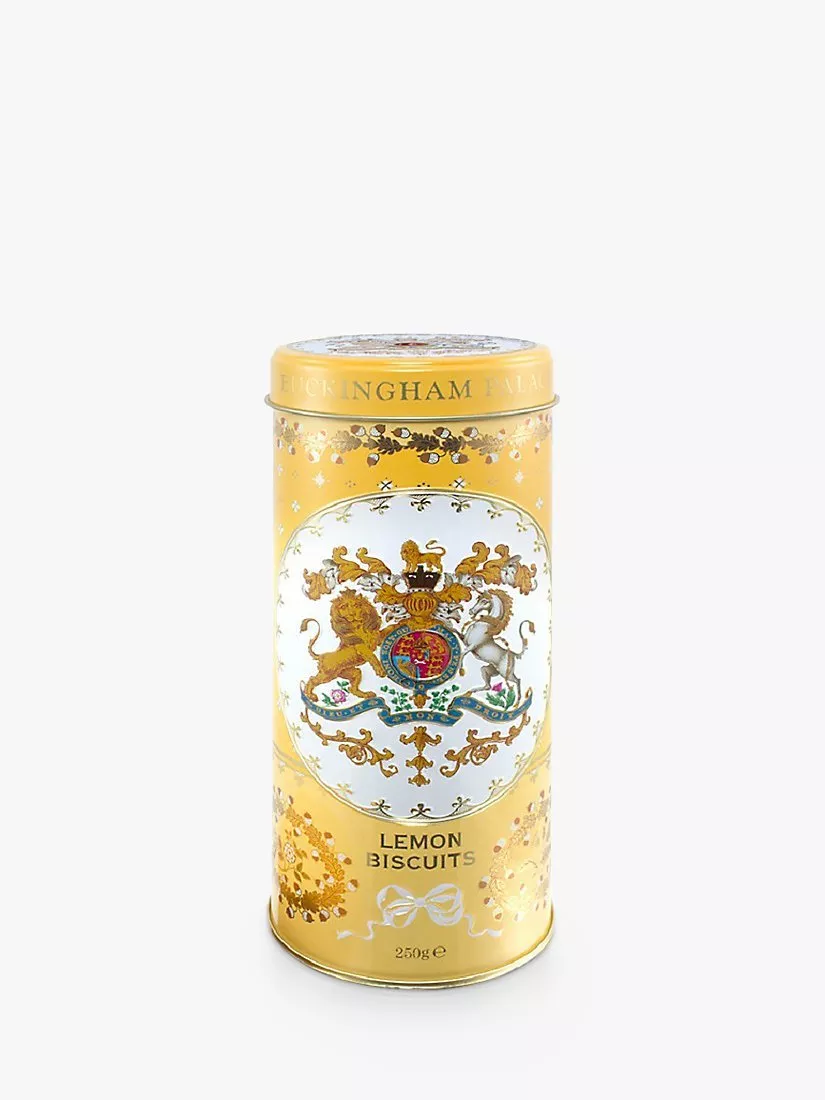 Eighteen delicious lemon shortbread biscuits presented in a yellow tin. The design of the tin is inspired by two Worcester services in the Royal Collection; the border decorations of oak garlands and the national flowers are based on a breakfast service commissioned by George III in 1805 and the Royal Coat of Arms is taken from a spectacular service commissioned by William IV in 1830, still used today at the Garter Day luncheon in the Waterloo Chamber, Windsor Castle.