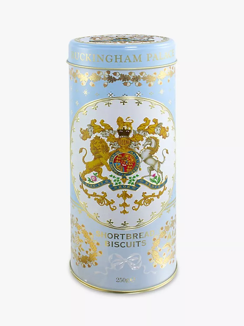Eighteen delicious shortbread biscuits presented in a blue tin. The design of the tin is inspired by two Worcester services in the Royal Collection; the border decorations of oak garlands and the national flowers are based on a breakfast service commissioned by George III in 1805 and the Royal Coat of Arms is taken from a spectacular service commissioned by William IV in 1830, still used today at the Garter Day luncheon in the Waterloo Chamber, Windsor Castle.