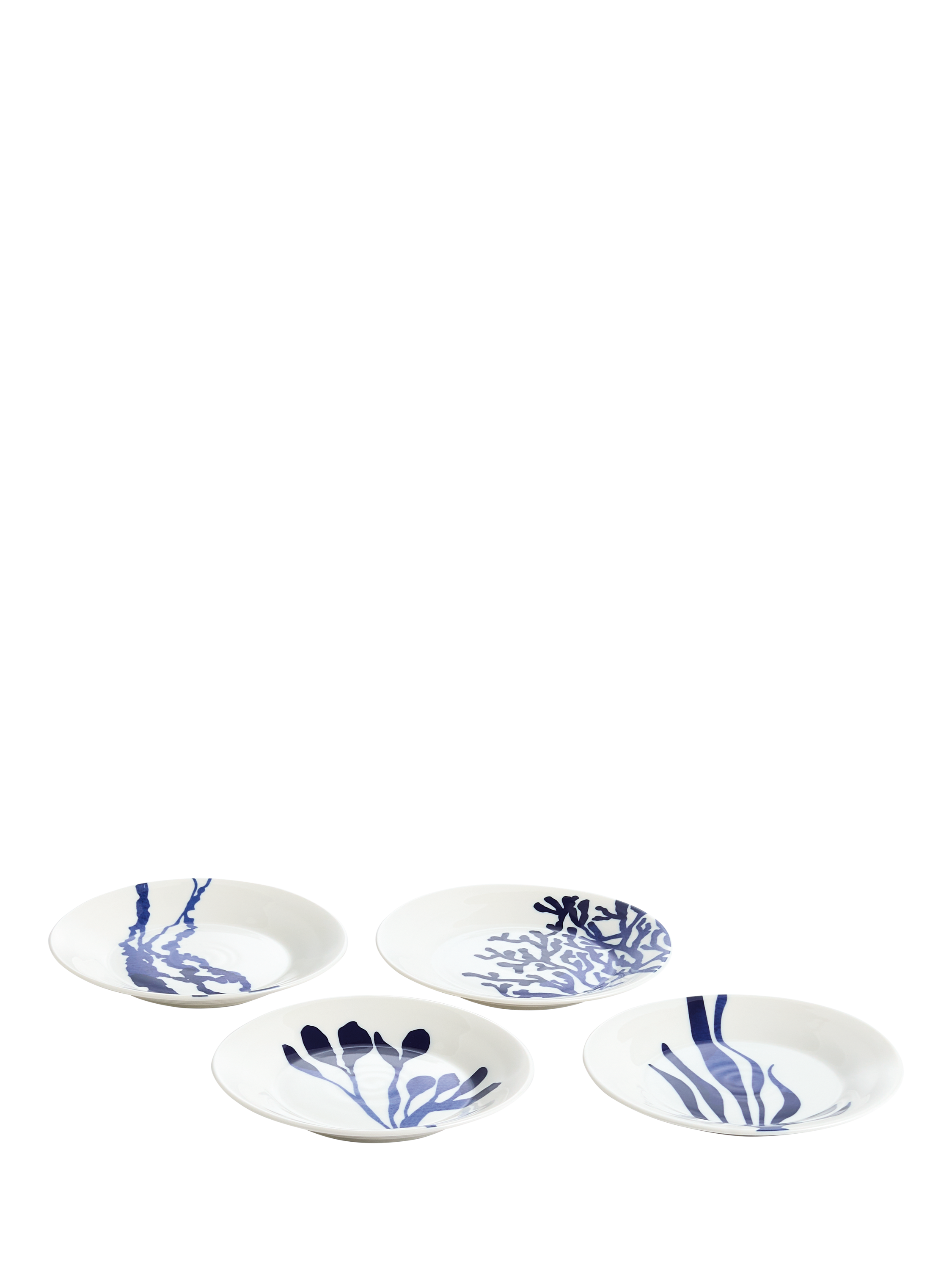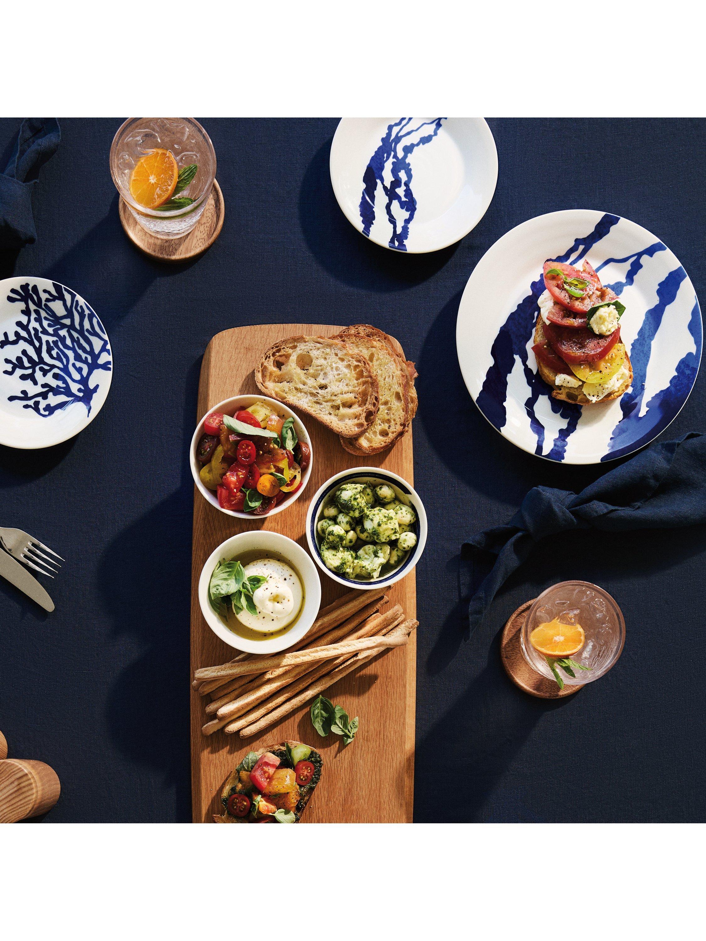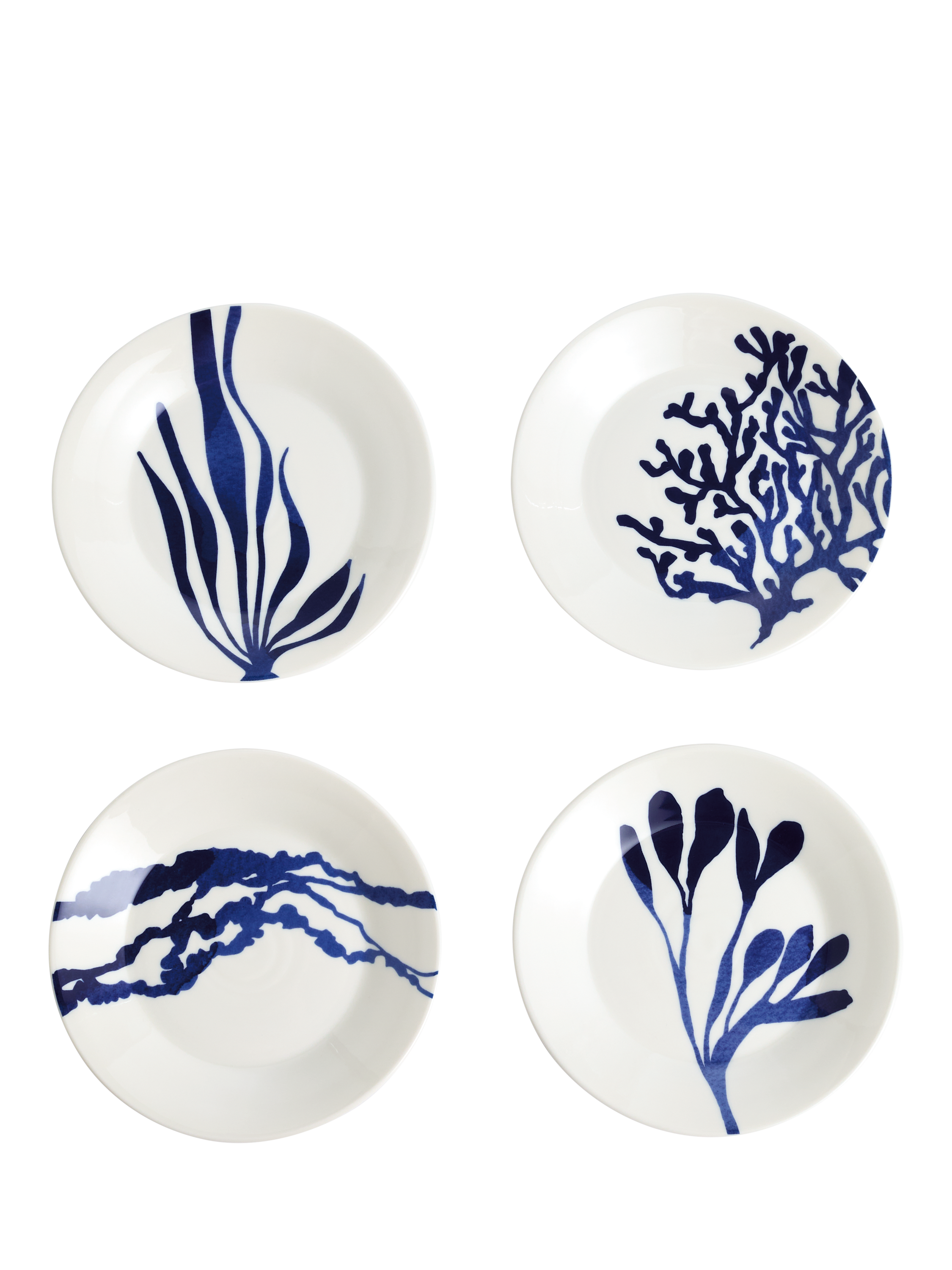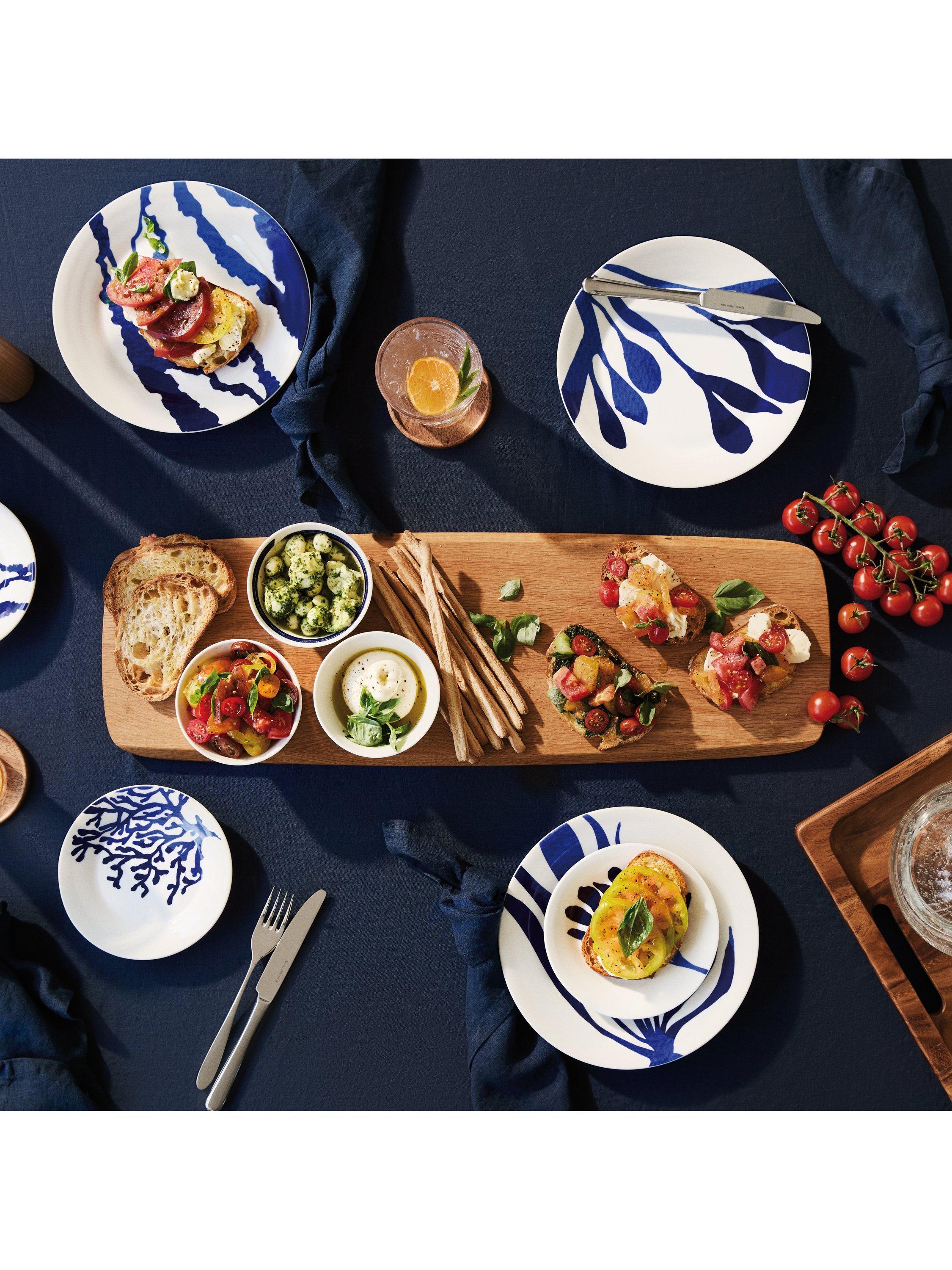 Four side plates from Royal Doulton's Pacific collection in four different patterns. Made of resilient porcelain, they're dishwasher and microwave-safe for everyday use.