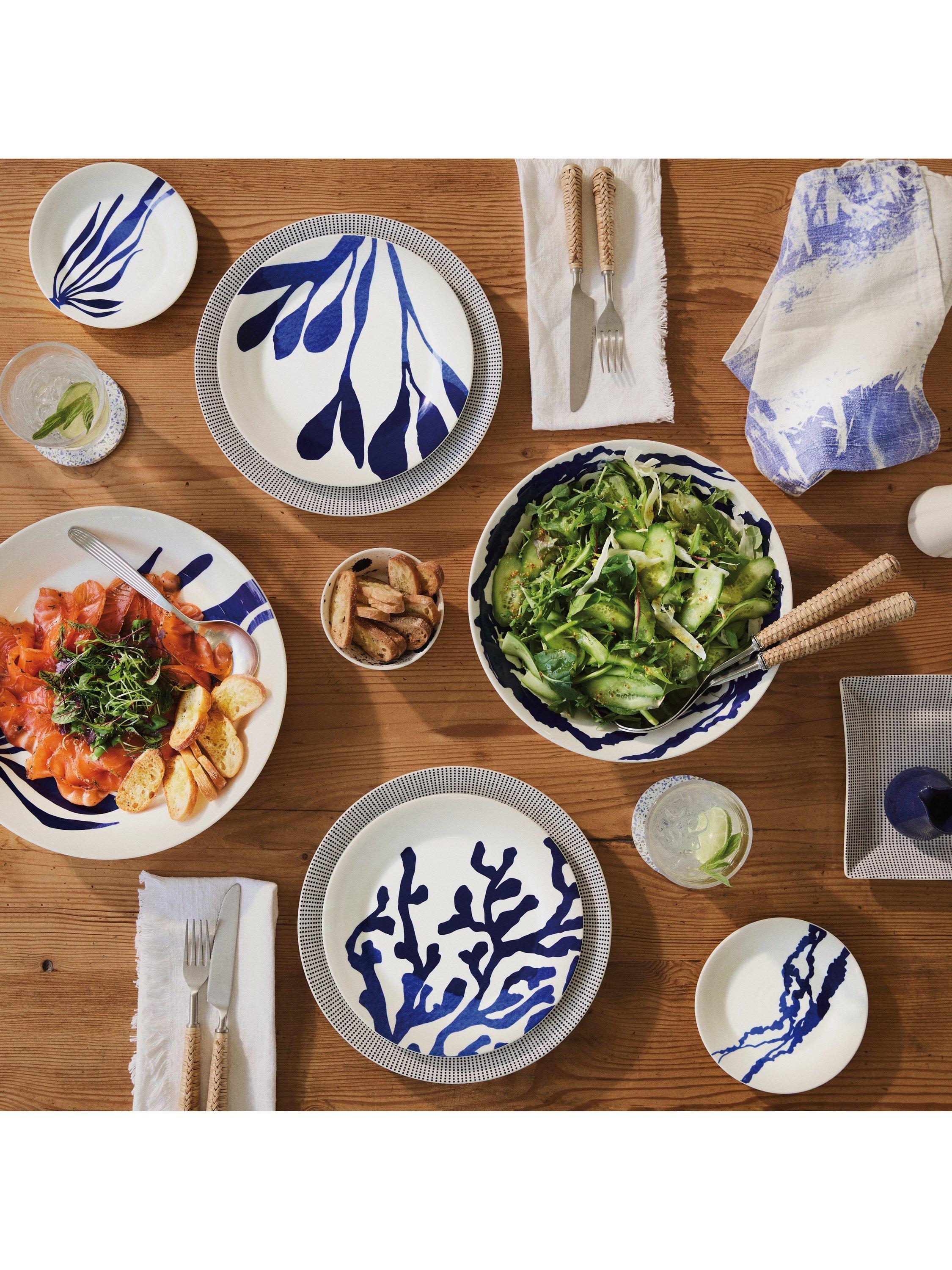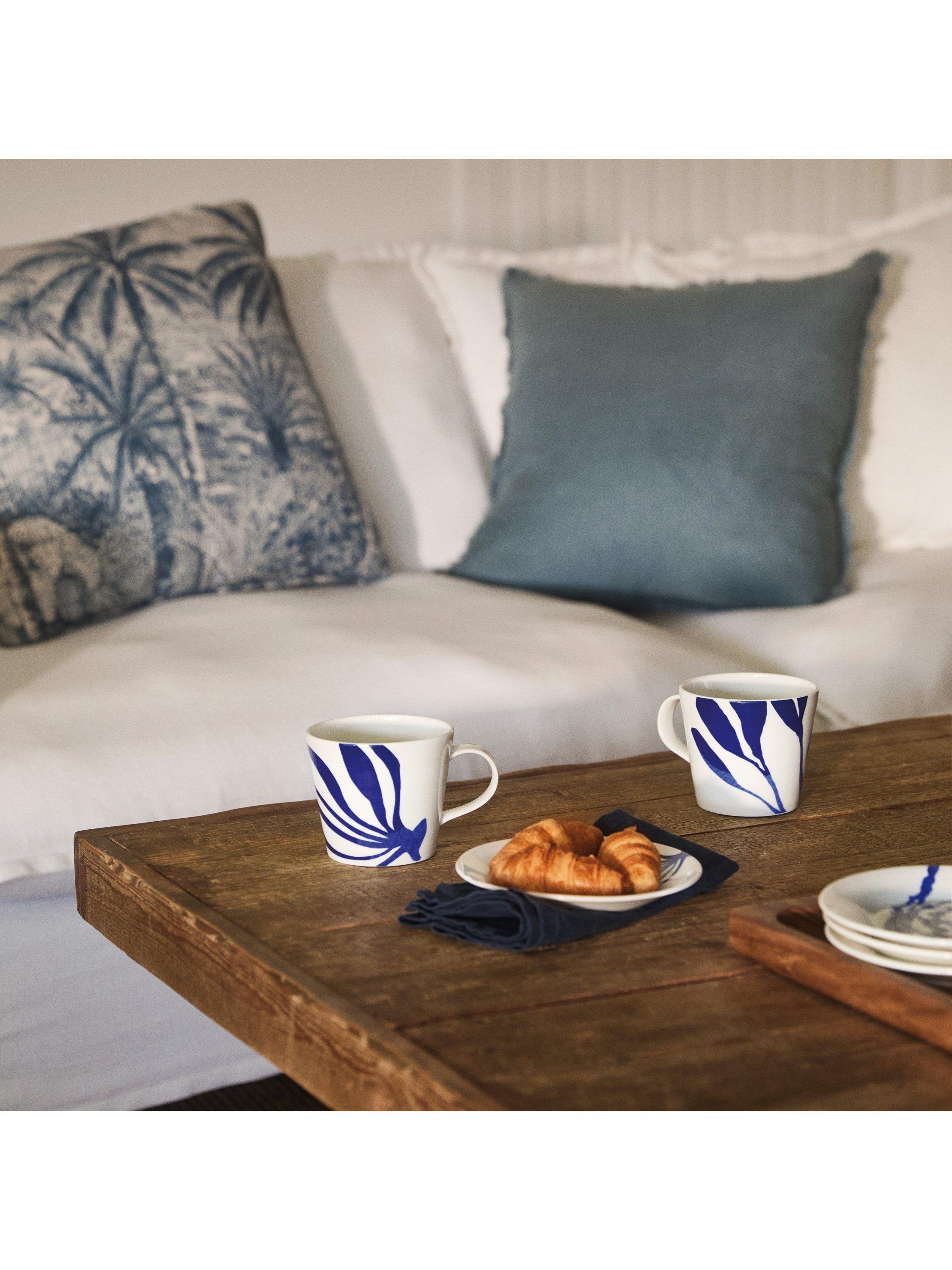 The Pacific collection takes inspiration from coastal walks and beachcombing with patterns influenced by marine foliage. Detailed in an inky blue colour to invoke the calming feeling of the coast.