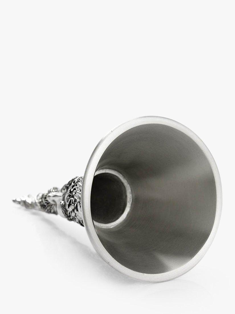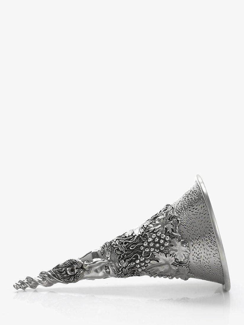 Bacchus, the Roman god of wine and revelry is reproduced here in intricate detail, as part of this Royal Selangor wine funnel.