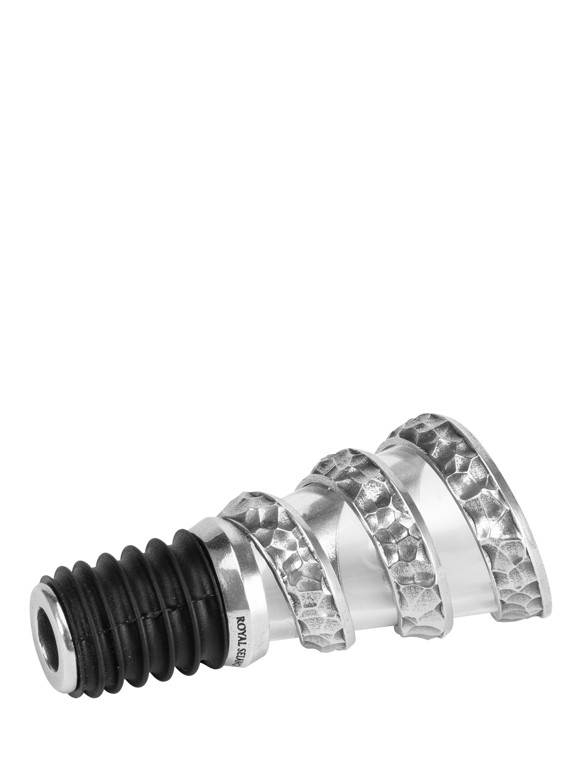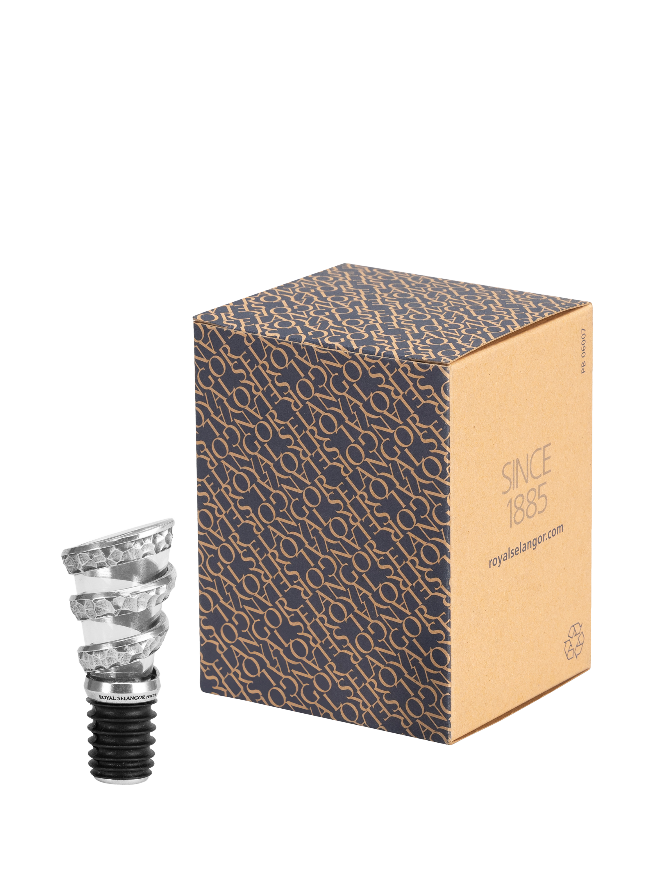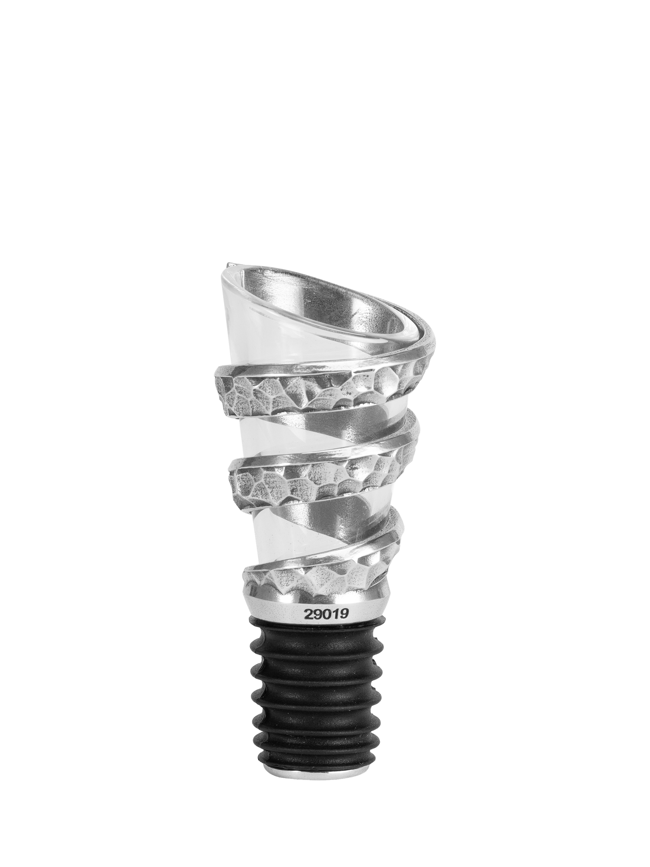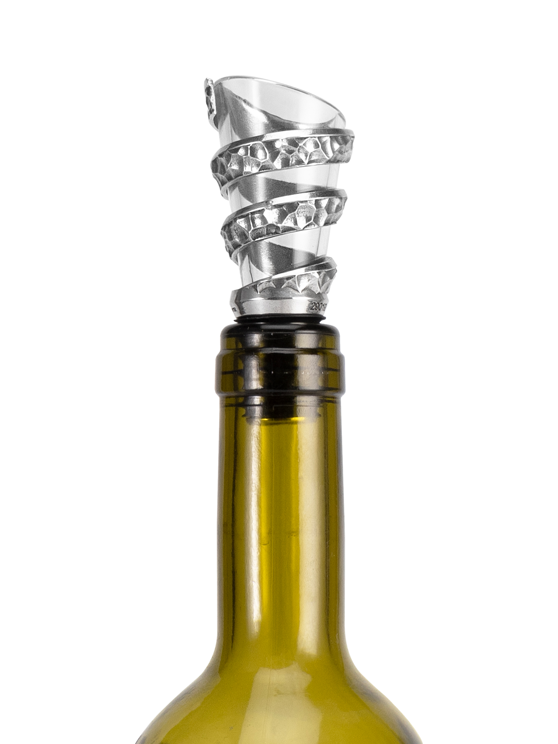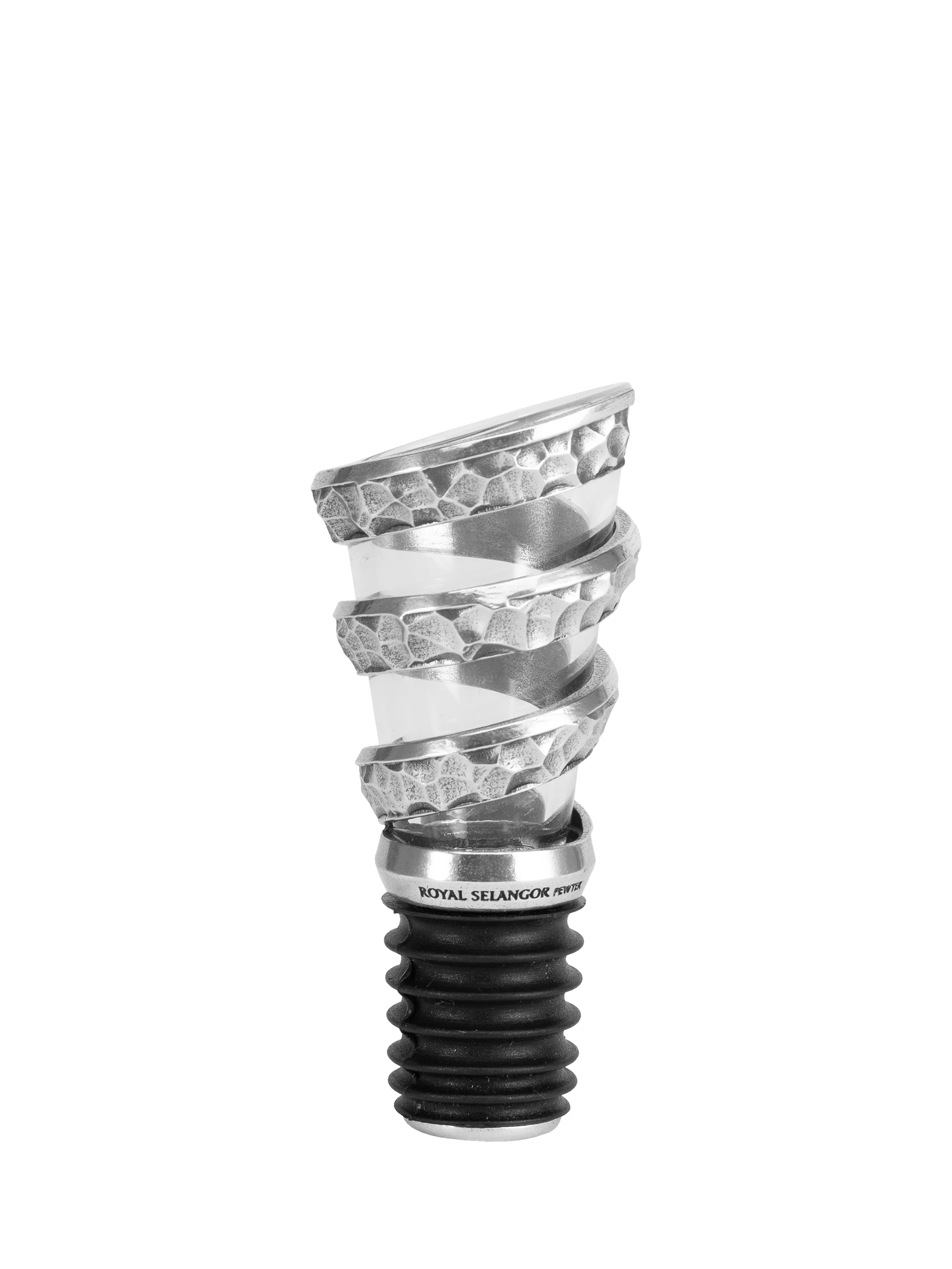 Designed for a smooth, drip-free pour, the Helix wine pourer attaches neatly to the neck of your wine bottle. Crafted from glass with an elegant, dimpled pewter spiral, it ensures a controlled flow, letting you serve wine with both precision and style.