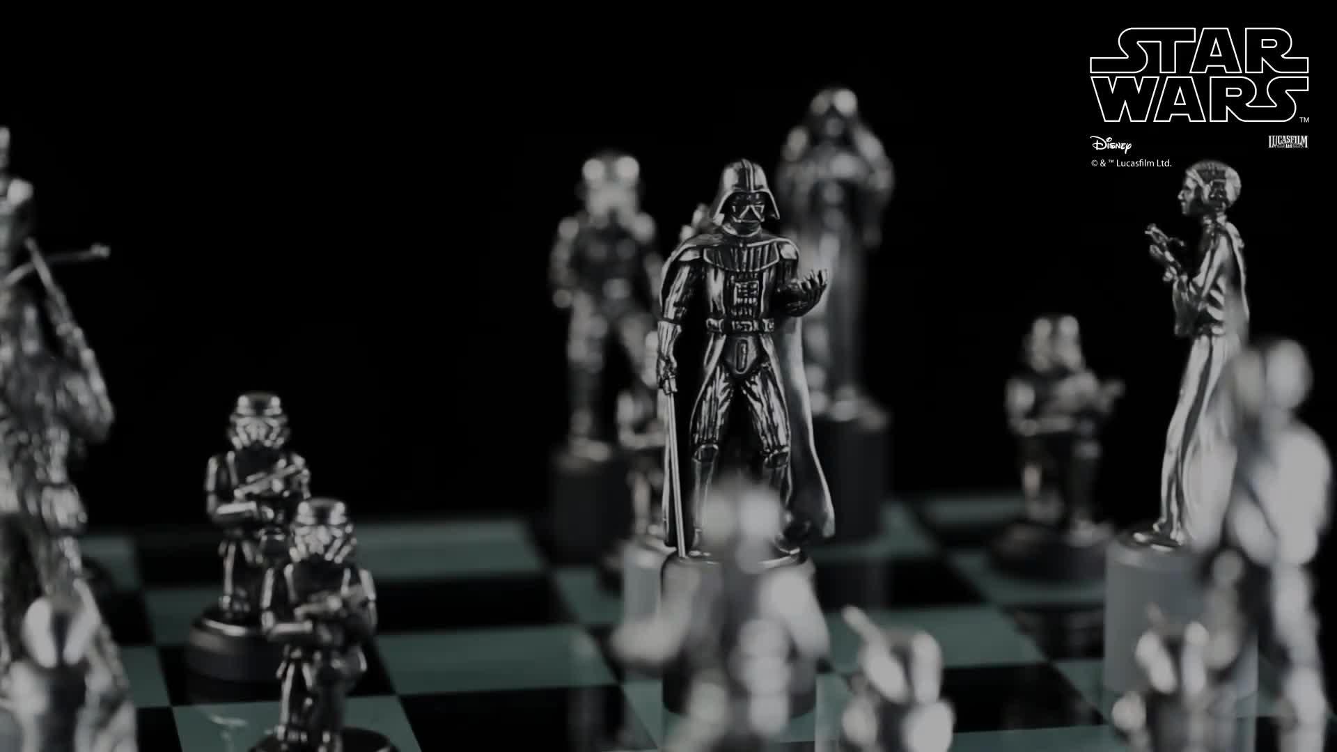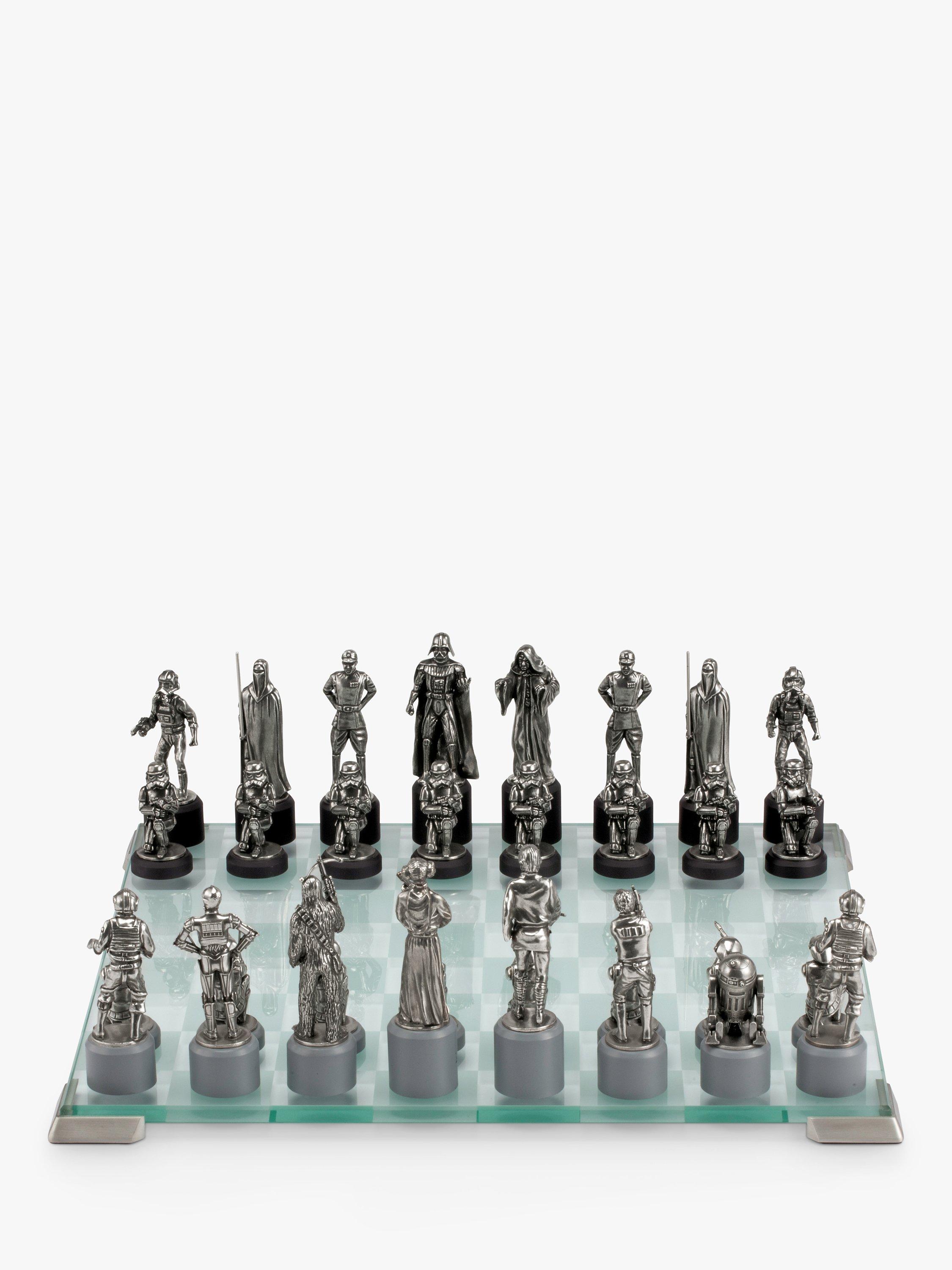 Featuring iconic characters from Star Wars Episodes IV, V and VI, the Royal Selangor chess set is crafted with astounding attention to detail. The embattled Rebel Alliance faces down their menacing Imperial counterparts, each standing on cool grey or matt black porcelain plinths.