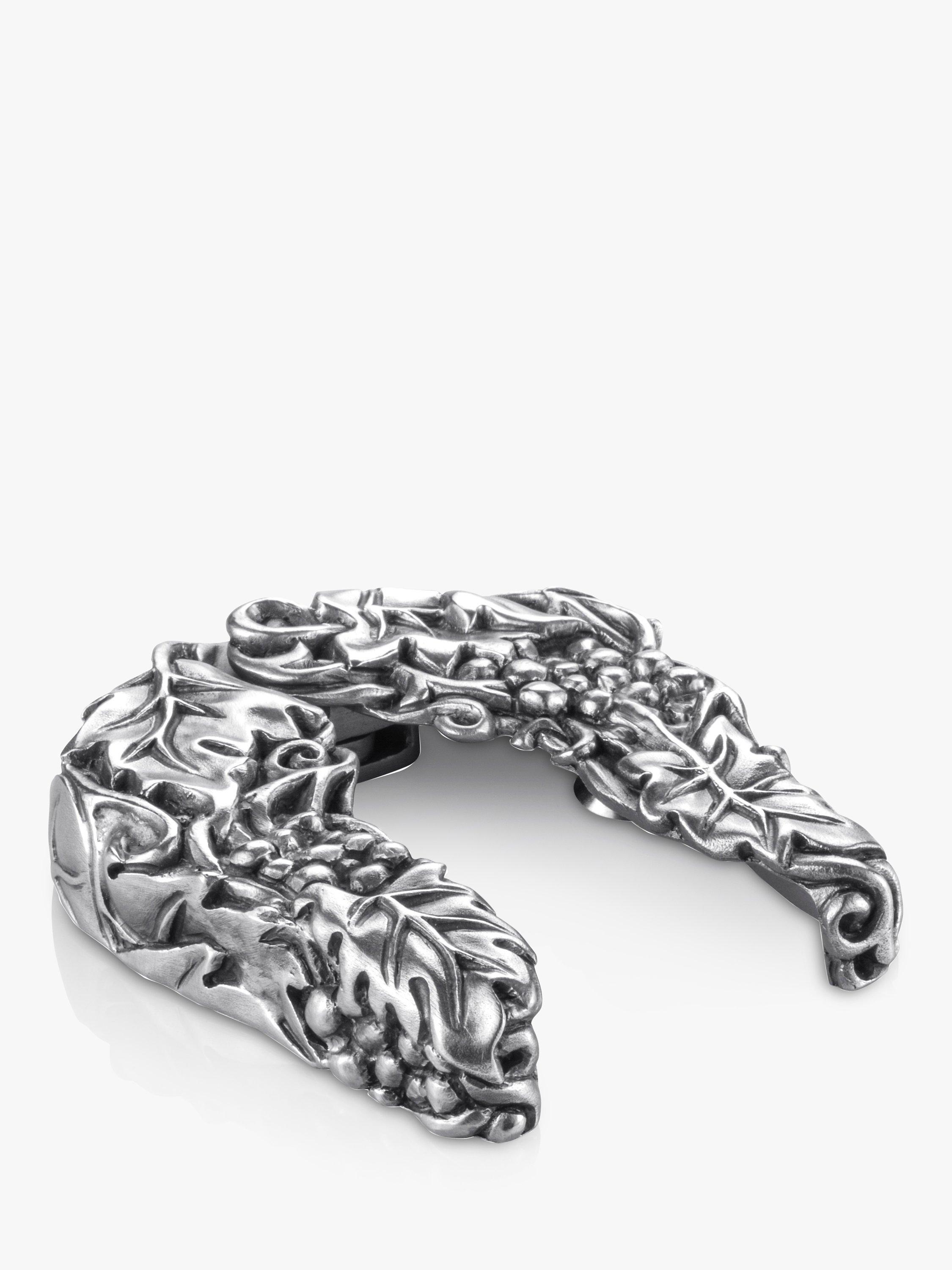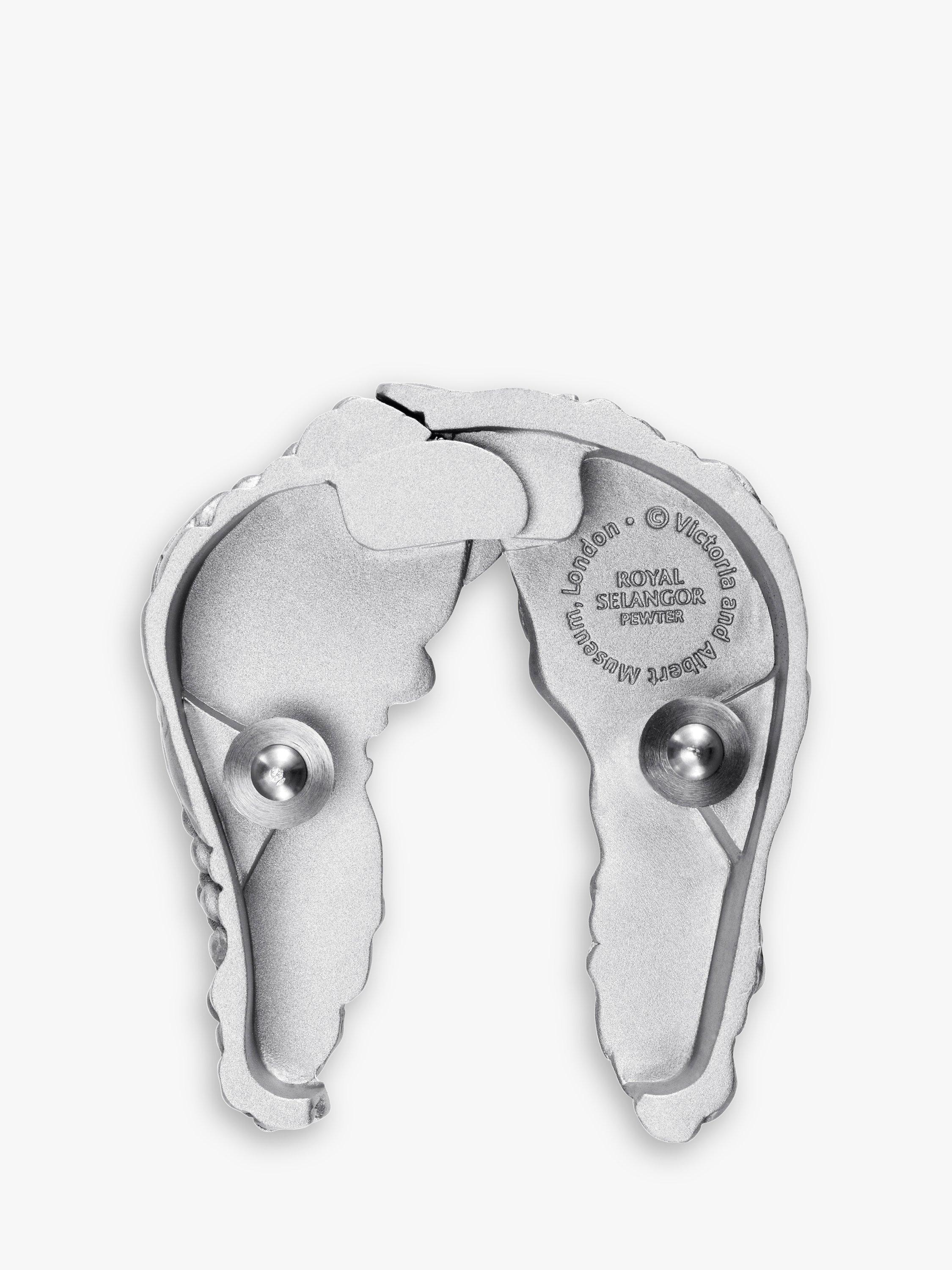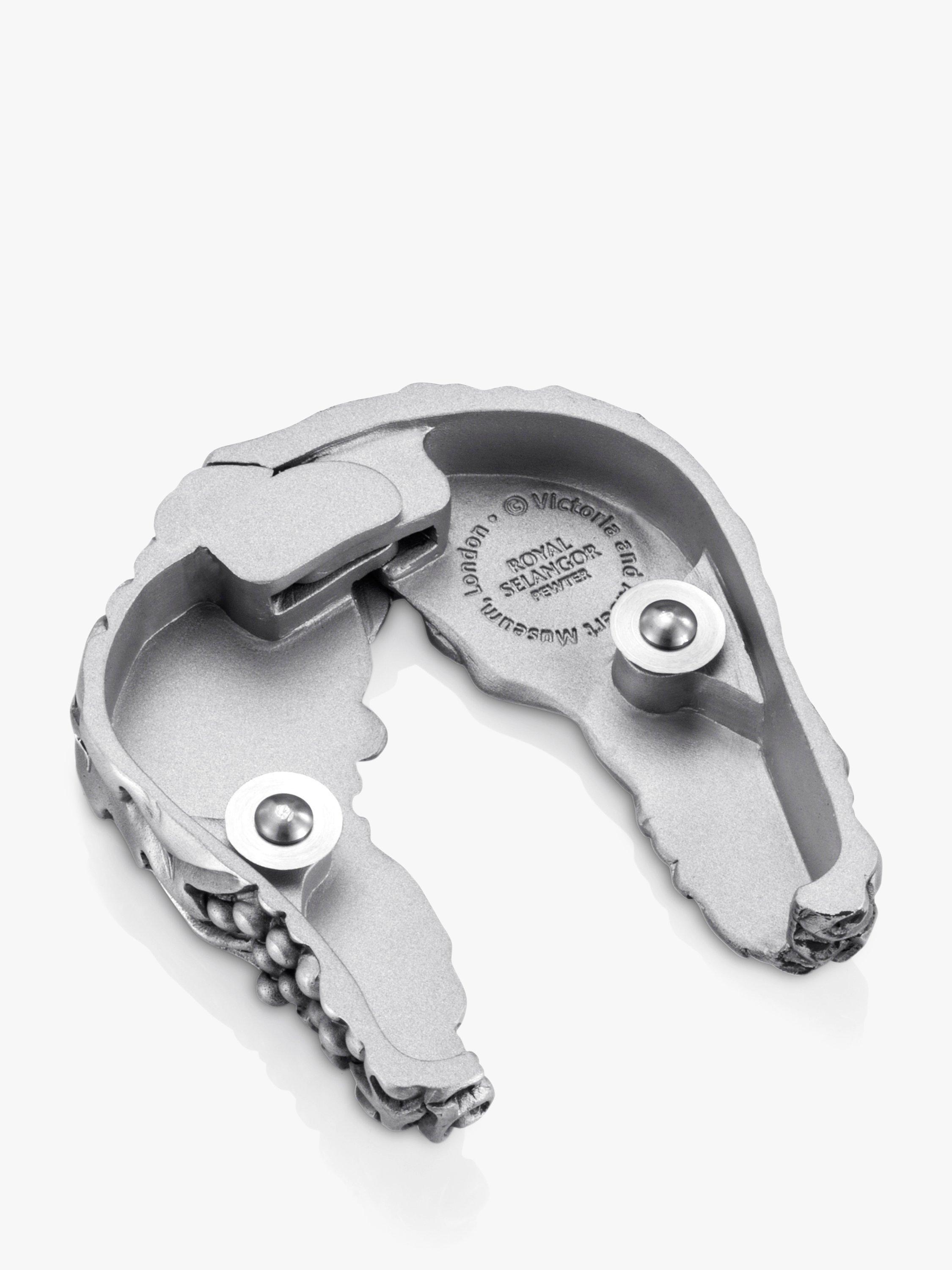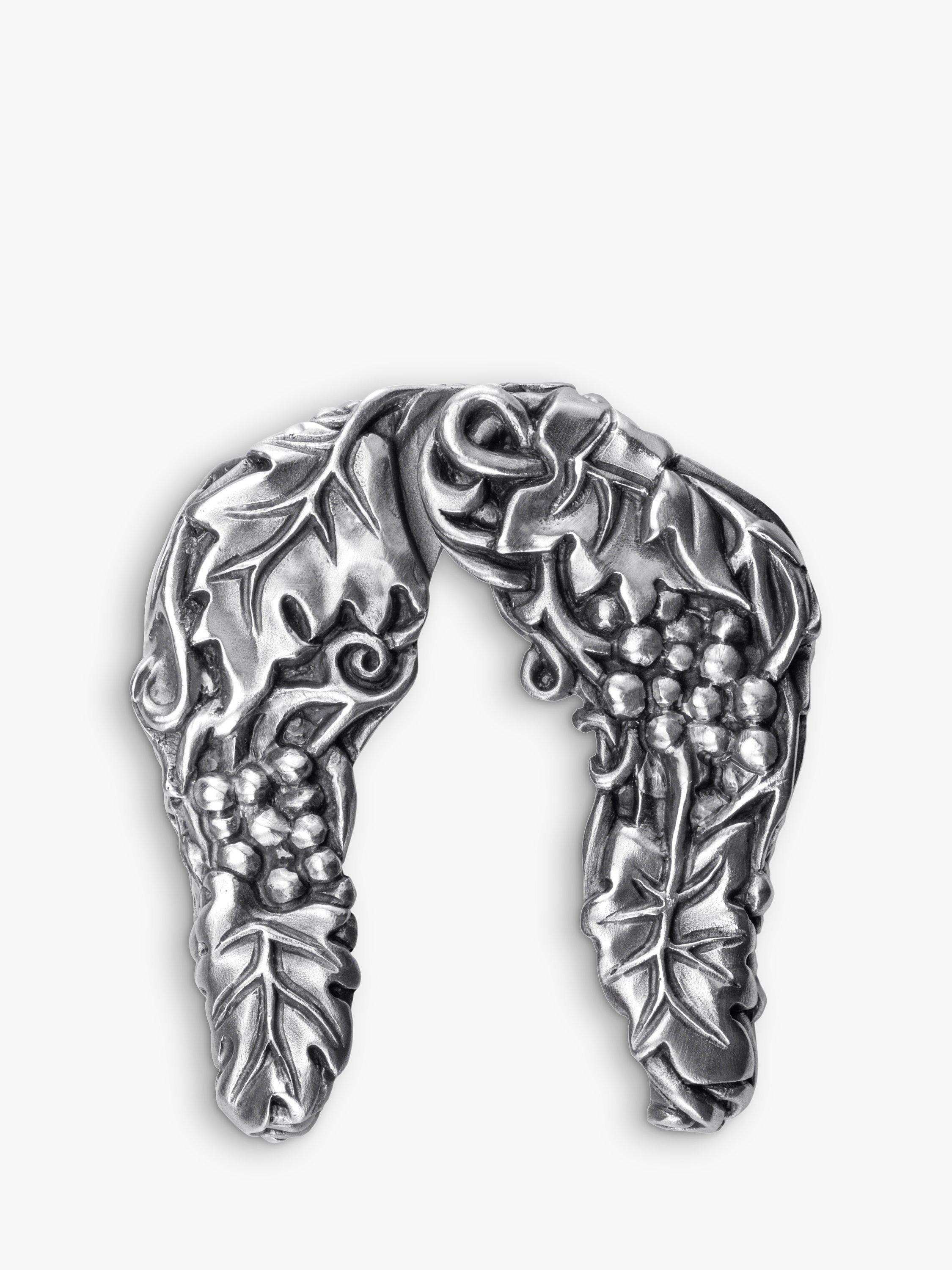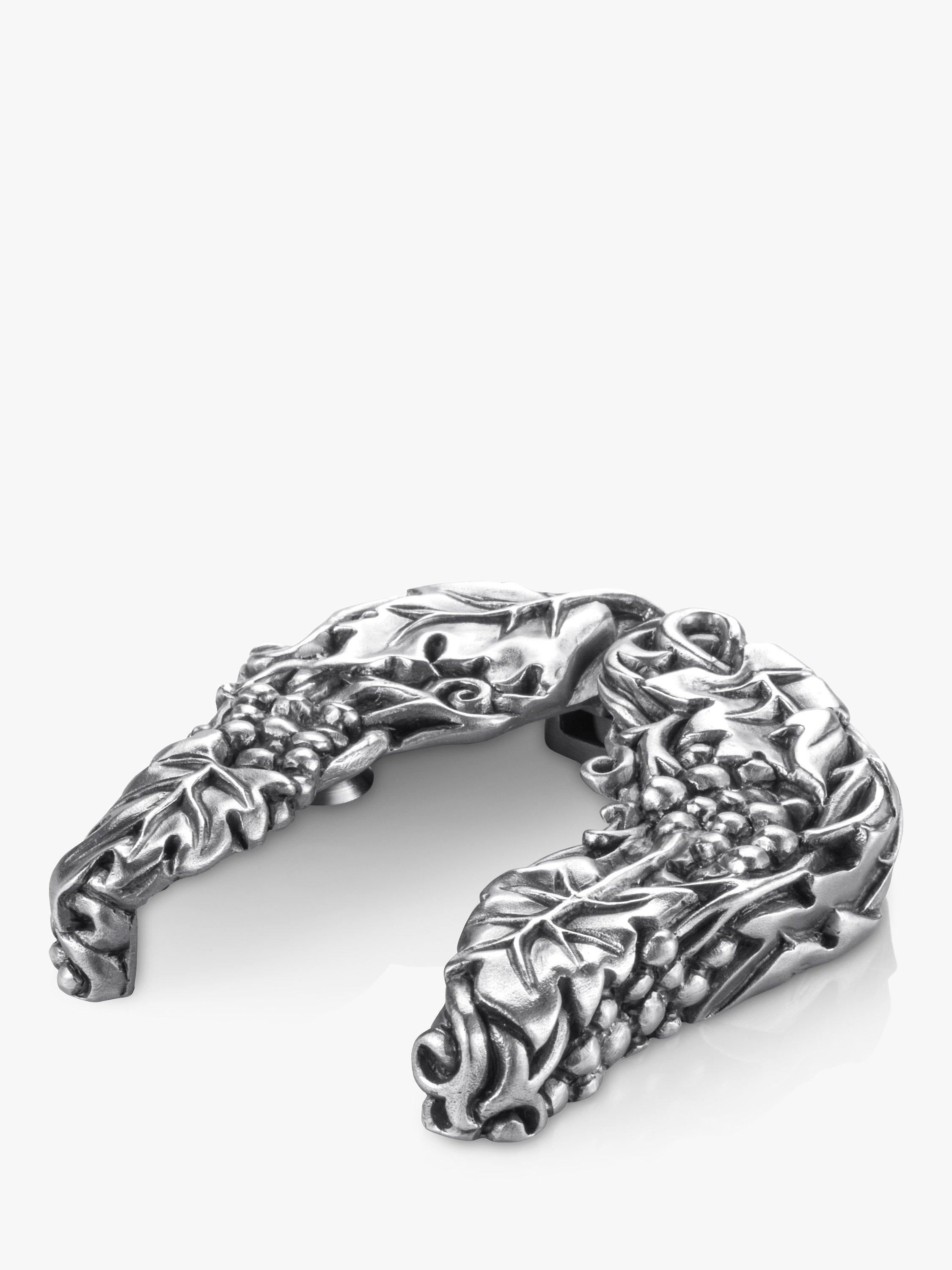 Covered in the William Morris grape and vine motif, a simple sprung hinge means this pewter foil cutter from Royal Selangor can accommodate most bottles.