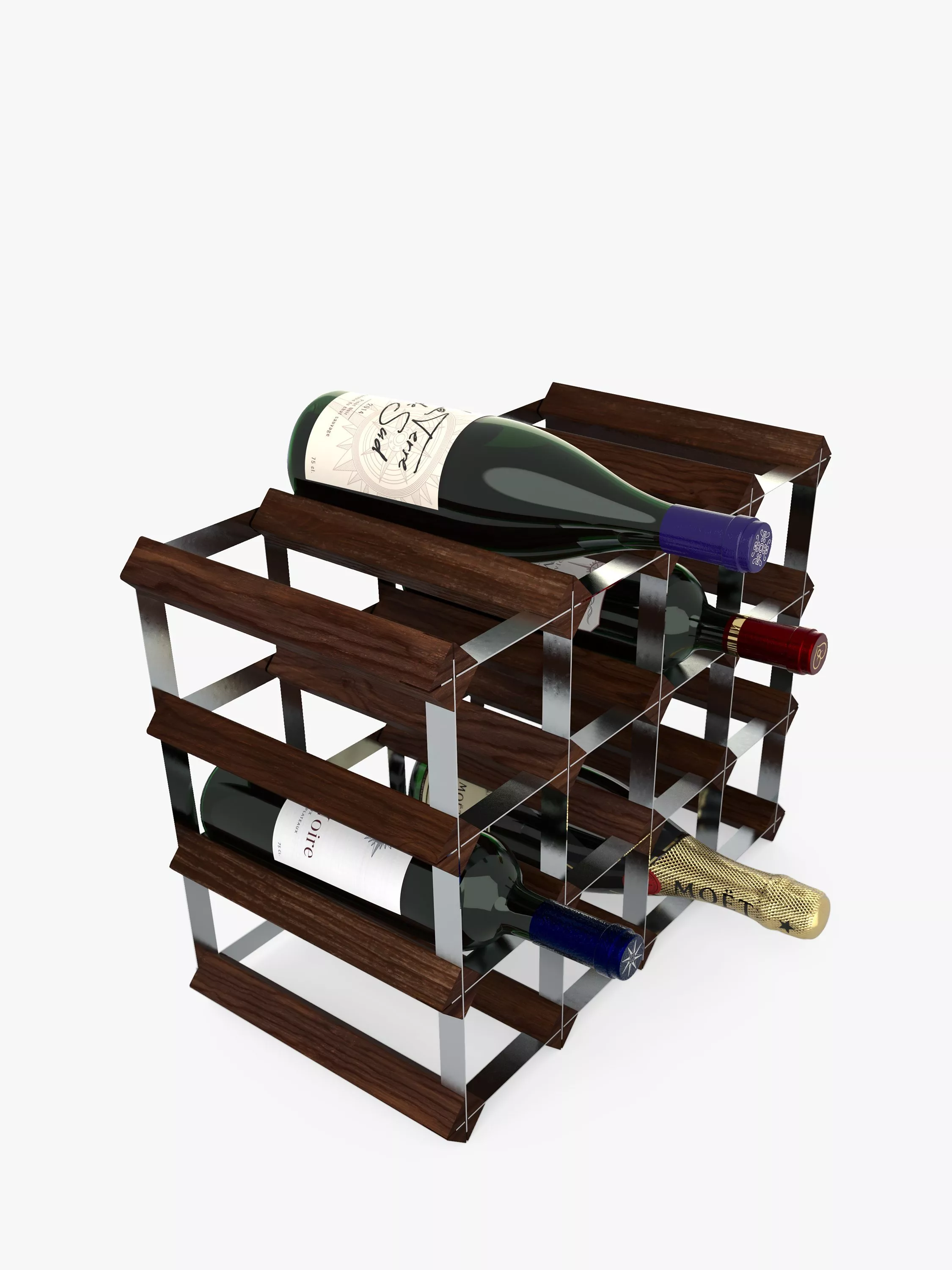 A space-saving contemporary design made in the UK, this freestanding wine and champagne rack has a sturdy galvanised steel frame with wooden shelves that hold up to 16 bottles, sized 75cl or one litre.