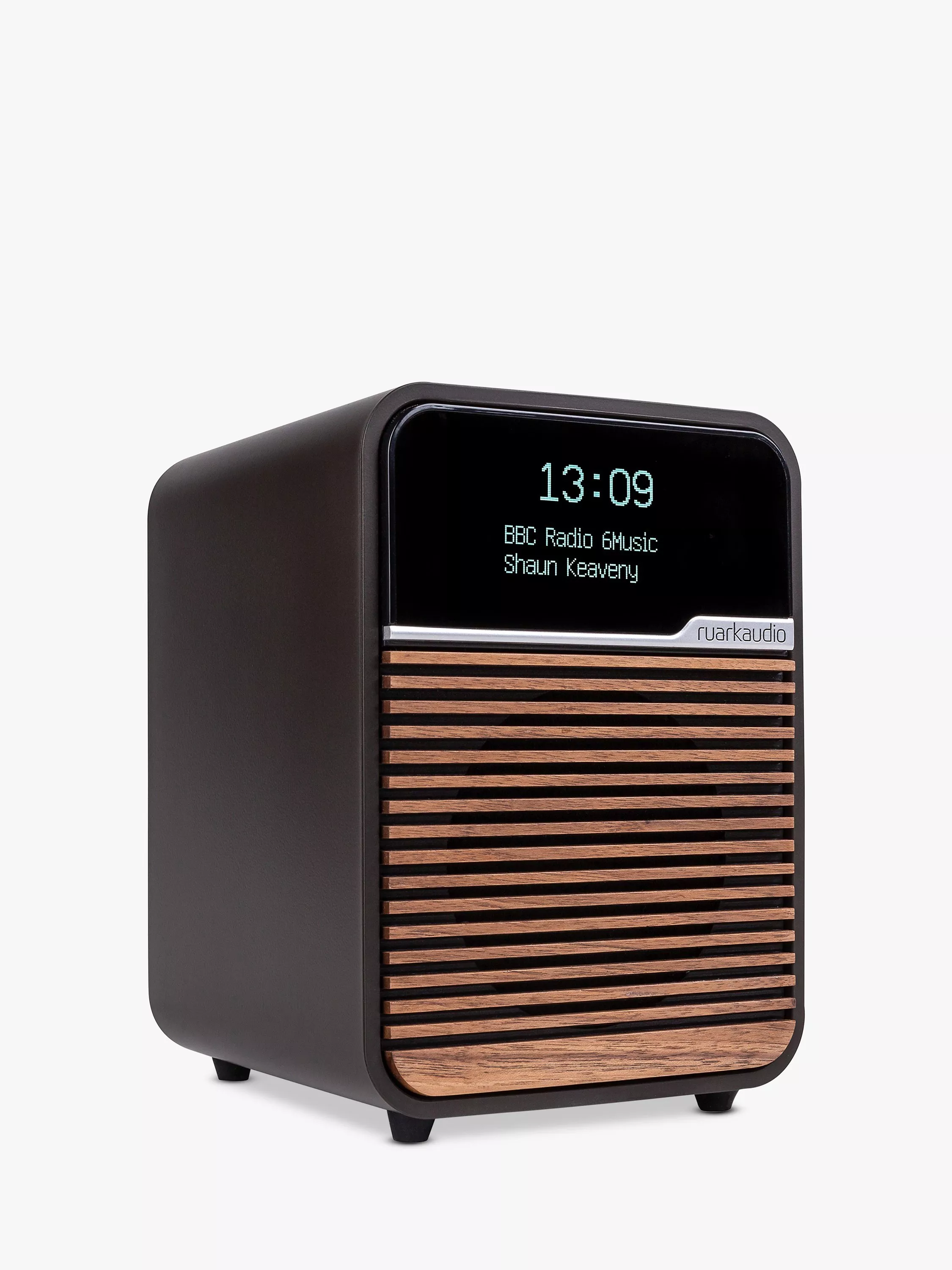 Its moulded polymer enclosure has been acoustically treated, complemented by a hand-crafted slatted wooden grille. A fresh but timeless look is created, while still being distinctively Ruark in appearance.