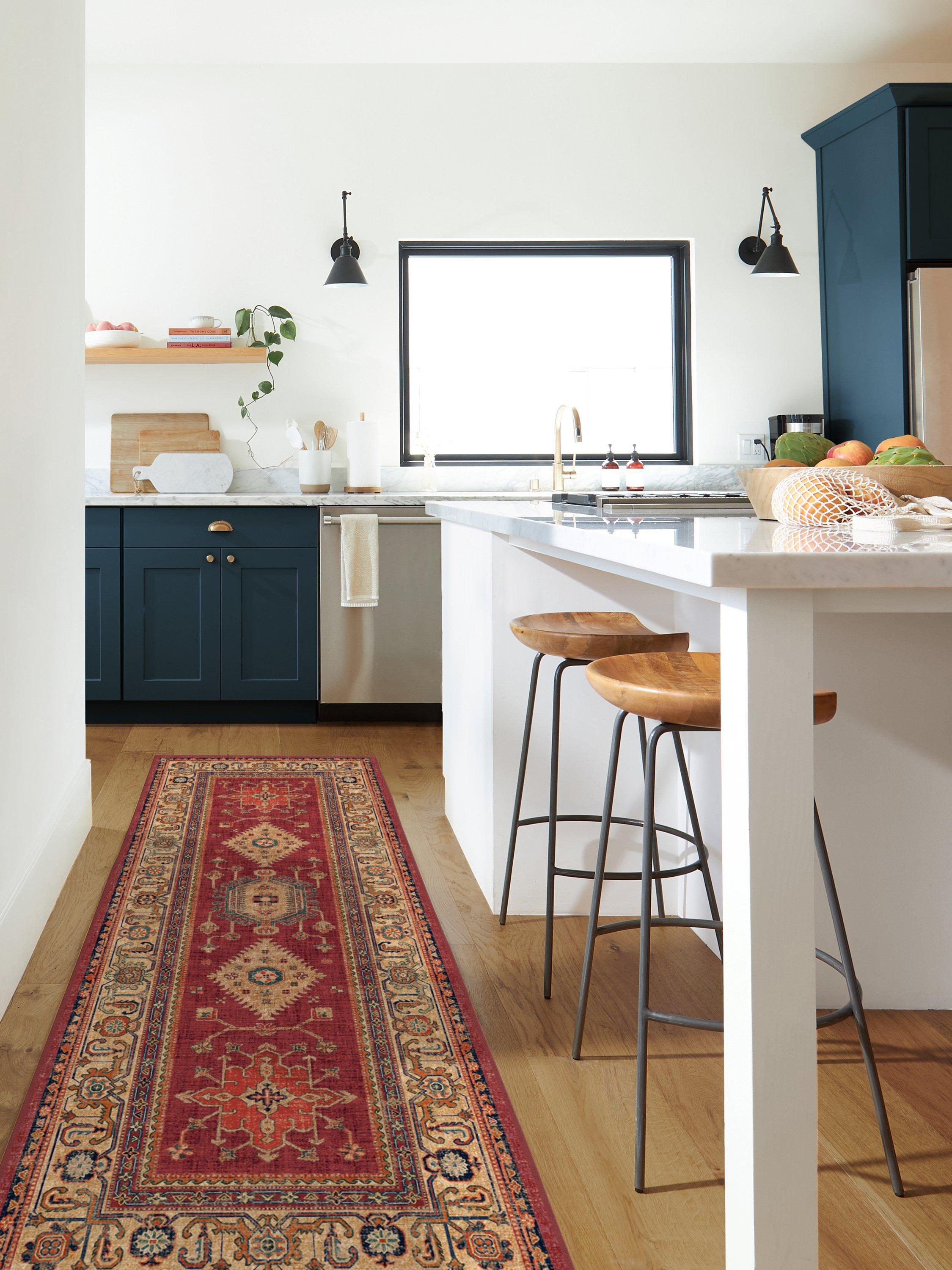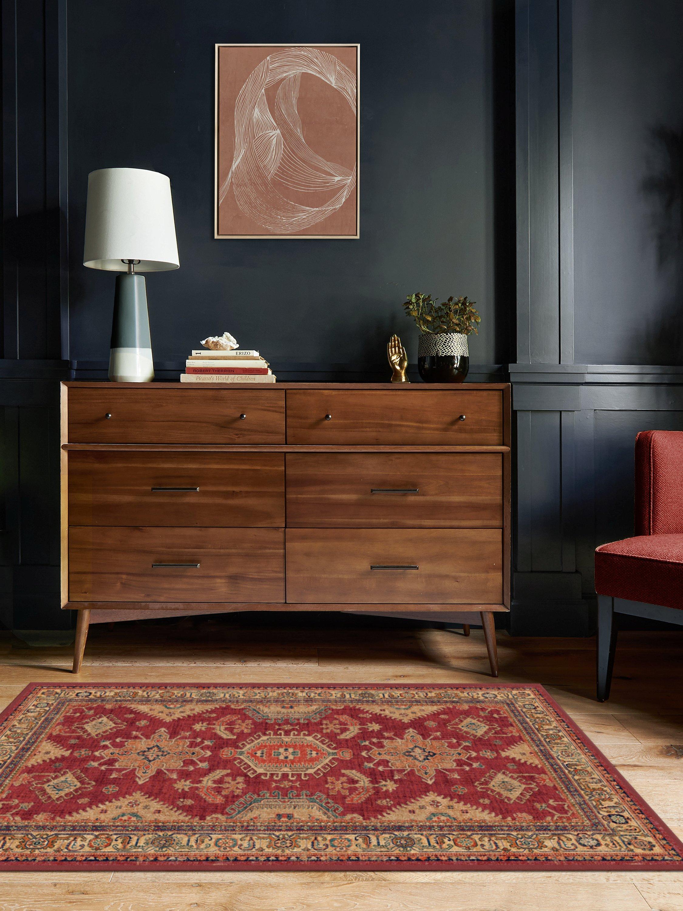 Inspired by the kilim textile designs from Turkey, this Cambria Rug will bring worldly influence to your home's interior. The intricate pattern work is reminiscent of a Persian rug and is elegantly rendered in a variety of complementary hues, adding sophistication and elegance to your current home furnishings. Water-resistant, stain-resistant, and machine-washable. Rug colours may vary slightly according to your device and the lighting in your space.